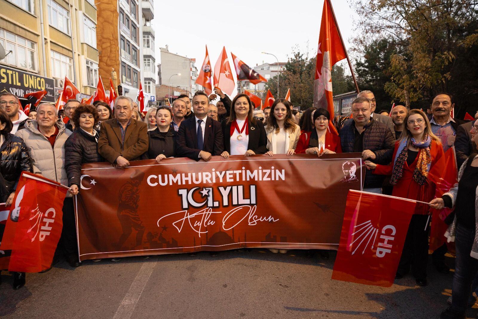 Cumhuriyetin, bizlere eşitliği, özgürlüğü, haklarımızı hediye ettiğini dile getiren Başkan Burcu Köksal, “Bu değerler uğruna nice bedeller ödendi, nice canlar feda edildi. Cumhuriyet bize sadece miras değil; aynı zamanda bir sorumluluk bıraktı. Onun değerlerini korumak, onu daha da yüceltmek bizim en büyük görevimizdir. Bizler, bu emaneti koruyarak, Cumhuriyetimizin ilkelerini daha ileriye taşımak için buradayız. Gazi Mustafa Kemal Atatürk’ün ‘Egemenlik kayıtsız şartsız milletindir!’ sözünü rehber edinerek, Cumhuriyetimizin aydınlık yolunda emin adımlarla ilerlemeye kararlıyız. Bu ruhla ve kararlılıkla diyorum ki: Cumhuriyet sadece geçmişimiz değil, geleceğimizdir! Cumhuriyet, özgür ve bağımsız bir millet olarak yolumuzu aydınlatan en güçlü ışık olacaktır. Bizler, bu ruhu her daim diri tutacağız. Cumhuriyet’in kazanımlarına sahip çıkacak ve gelecek nesillere güçlü bir Türkiye bırakacağız” şeklinde konuştu.