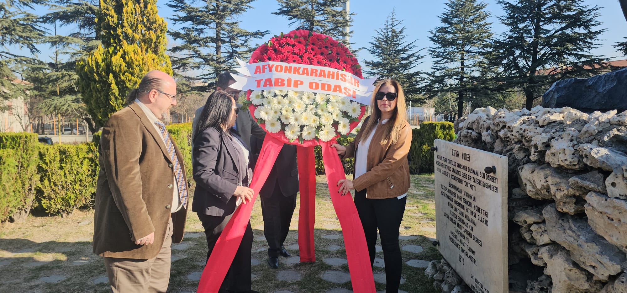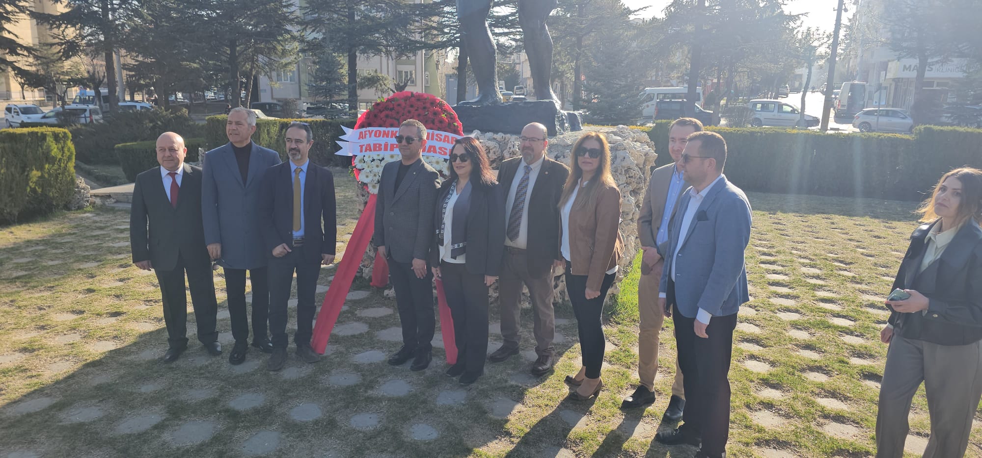 14 Mart Tıp Bayramı dolayısıyla, Afyonkarahisar Tabip Odası Başkanı Alev Türe ve beraberindeki doktorlar, Kocatepe Parkı’ndaki Atatürk Anıtı’na çelenk bıraktı. Saygı duruşunda bulunulup, İstiklal Marşı okundu. Başkan Türe, bu anlamlı günde tüm hekimlerin Tıp Bayramı’nı kutlayarak, sağlık hizmetlerine katkı sağlayan tüm sağlık çalışanlarına teşekkürlerini iletti.