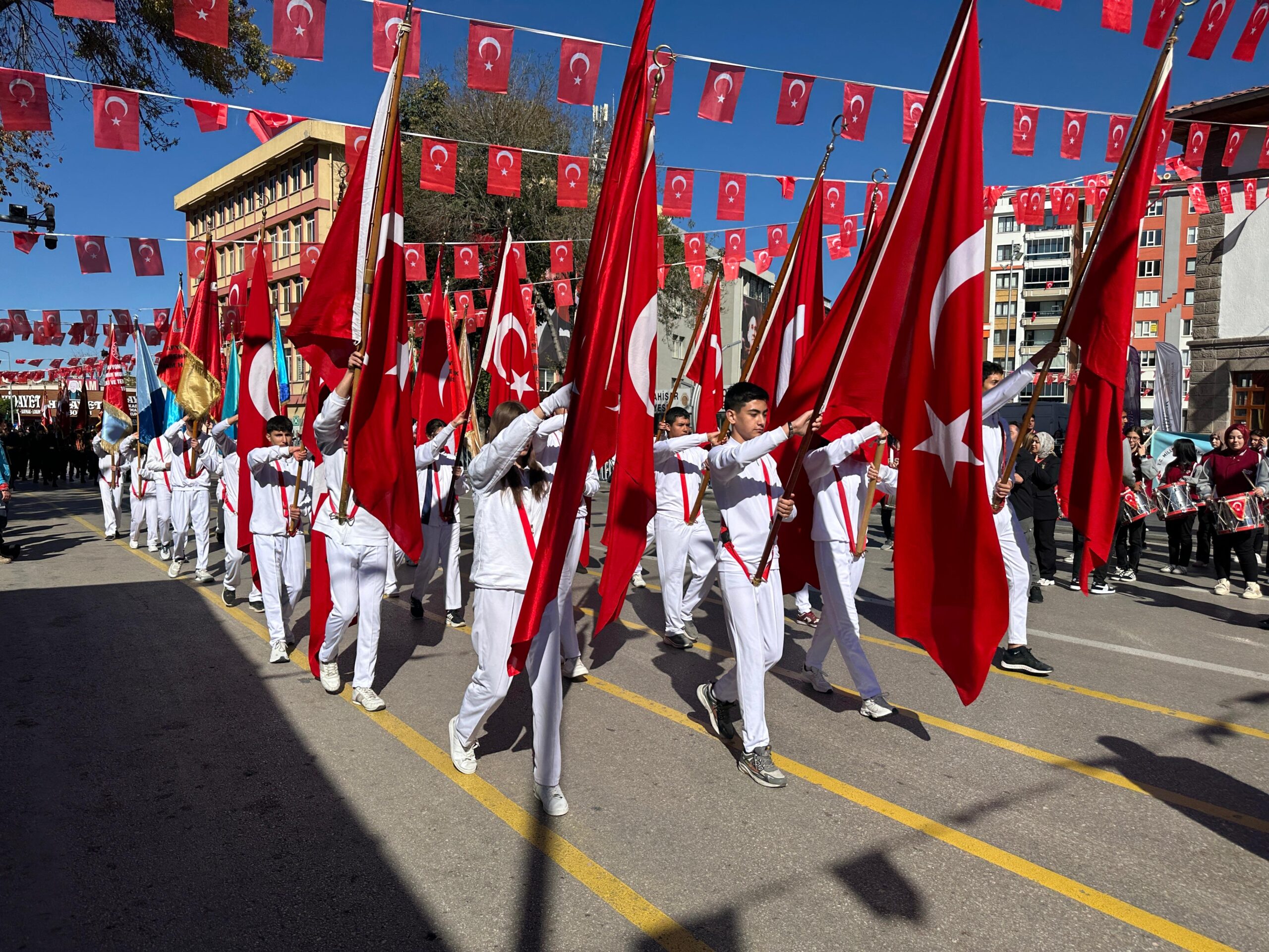 Kutlamalar, tören geçişiyle devam etti. Geçişte; tüm okulların bayrak ve flama grupları, askeri birliklerden oluşan Merasim Bölüğü, gaziler ve şehit yakınları, İl Jandarma Komutanlığı Asayiş Komando Bölüğü, ortaokul ve lise öğrencileri ile İl Emniyet Müdürlüğü Motorize Yunus Ekipleri yer aldı.
