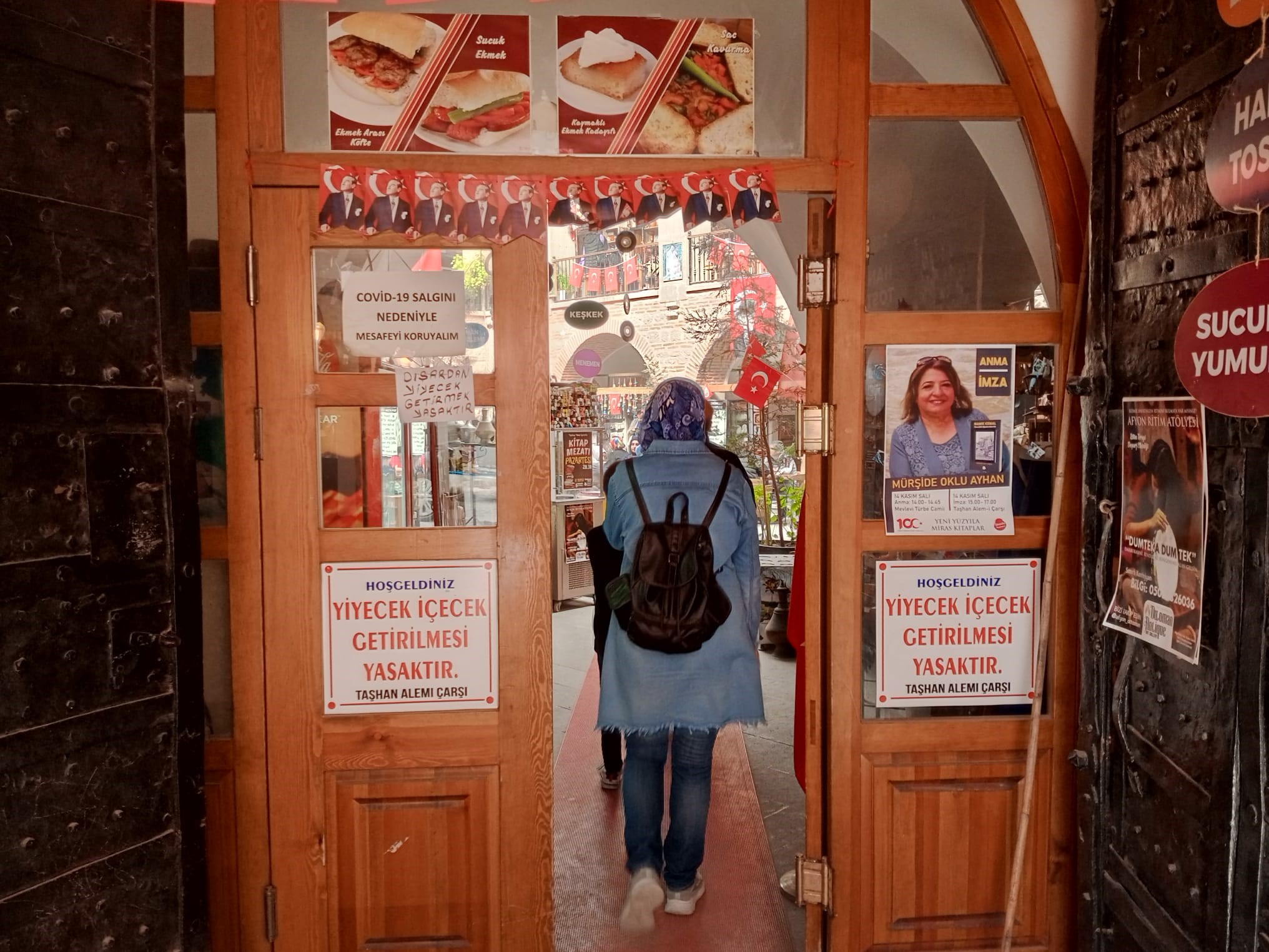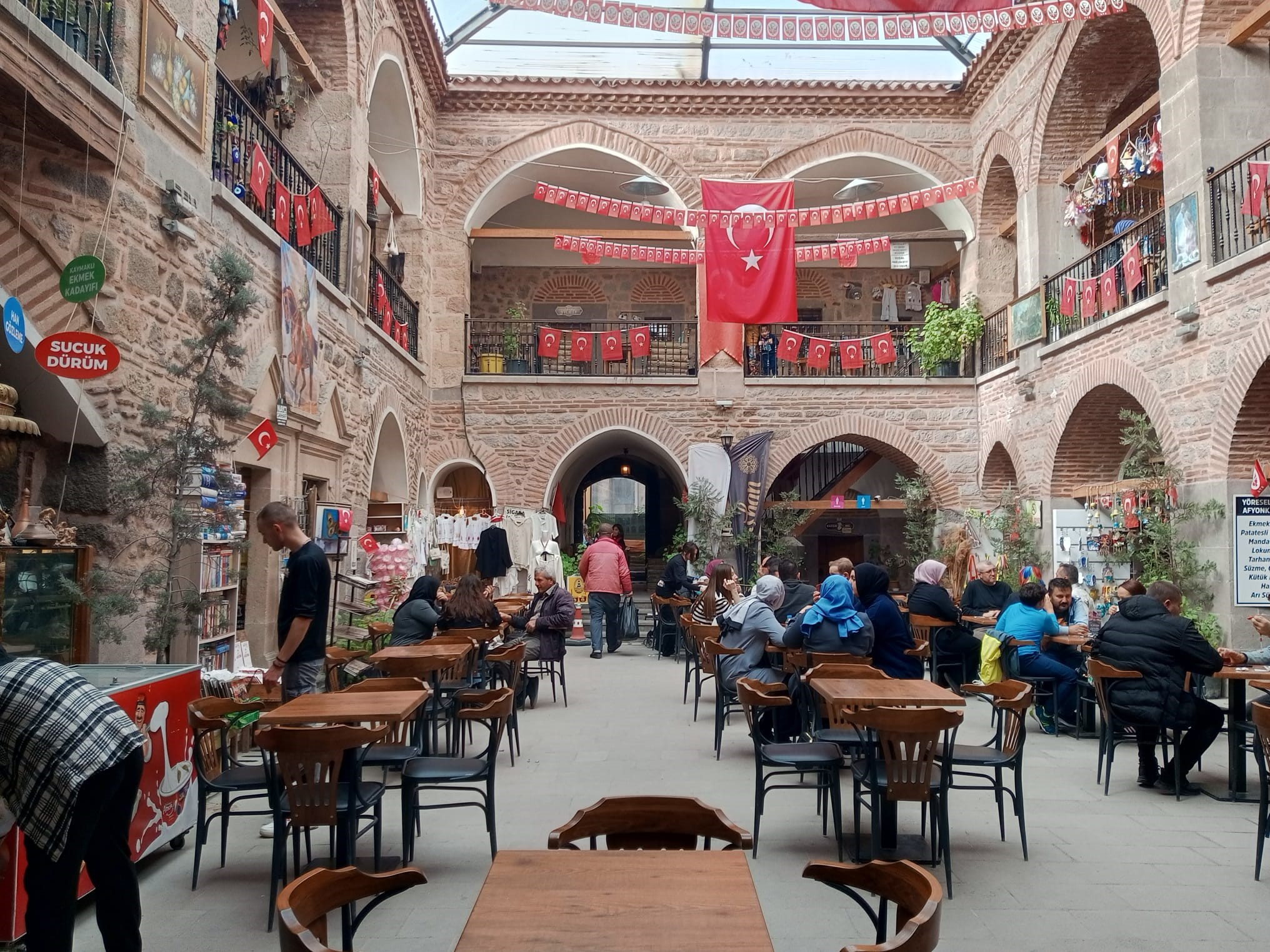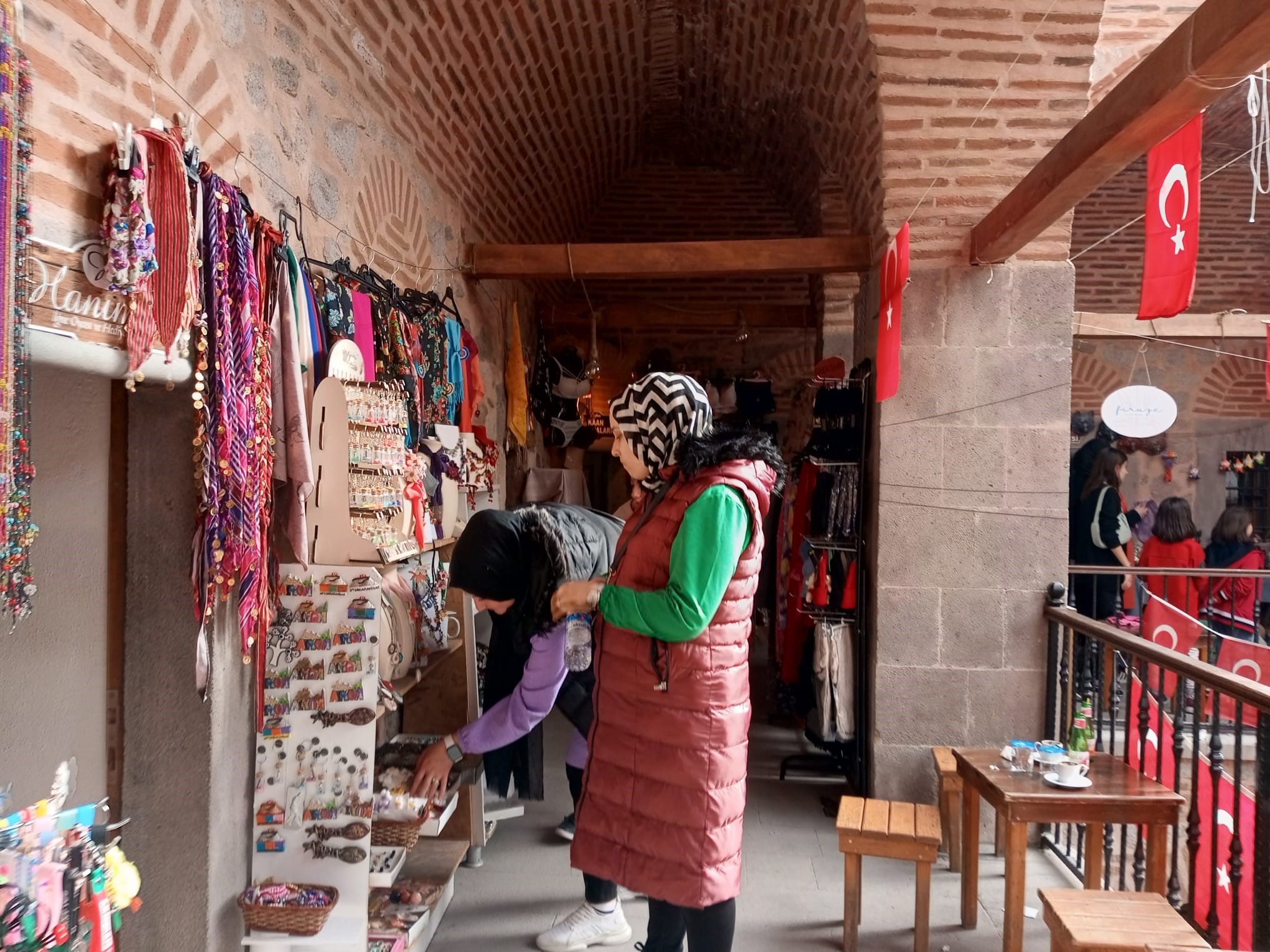 Öte yandan, hana gelen ziyaretçiler ise alışverişlerini yaptıktan sonra kafede tarihin izlerini seyrederek sıcak ve soğuk içeceklerini yudumluyor.