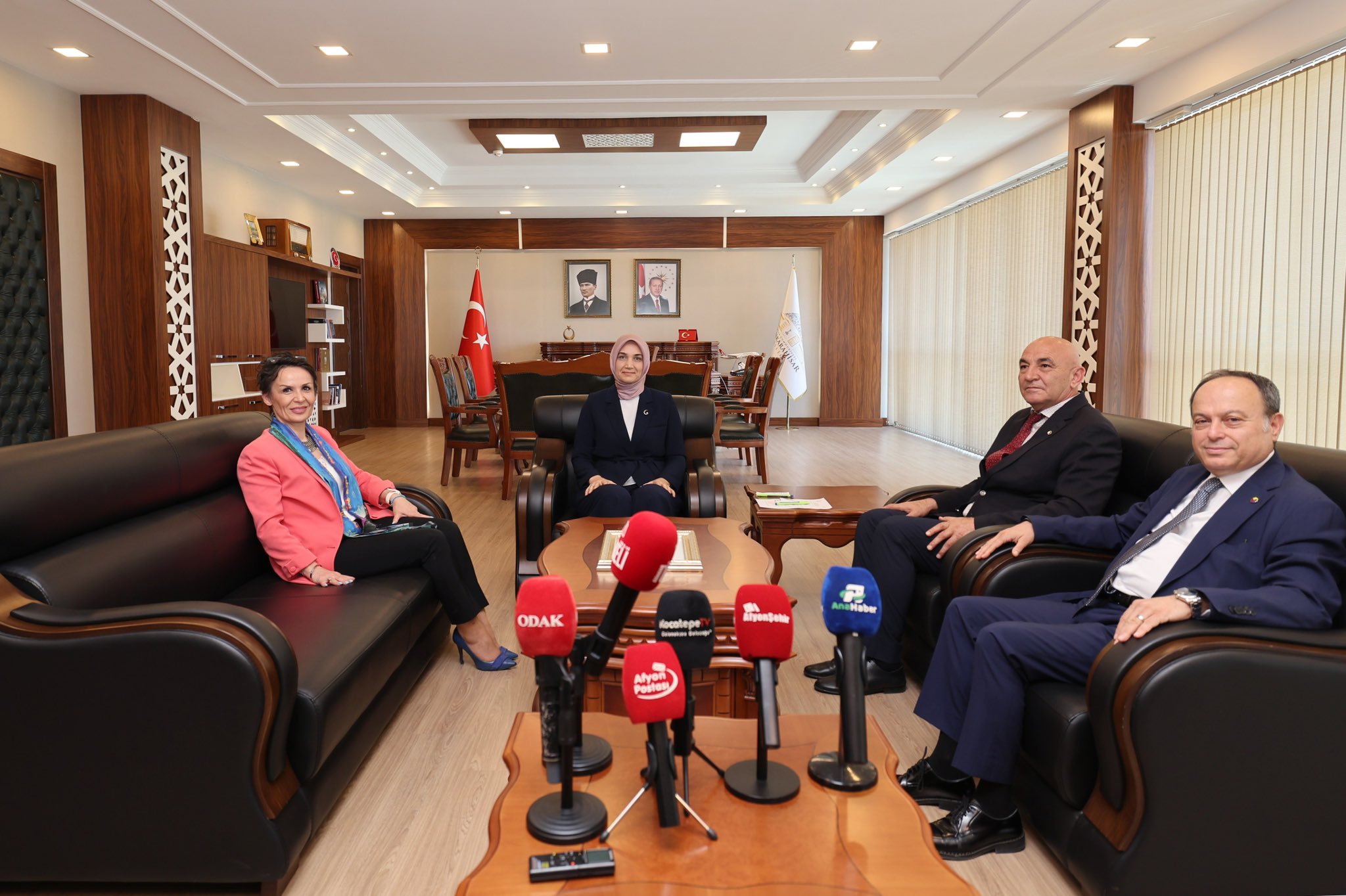 Afyonkarahisar Valisi Doç. Dr. Kübra Güran Yiğitbaşı, ATSO Başkanı Hüsnü Serteser, Afyonkarahisar Ticaret Borsası Başkanı Mehmet Mühsürler ve AB Coğrafi İşaret Danışmanı Huriye Özener’i makamında kabul etti.