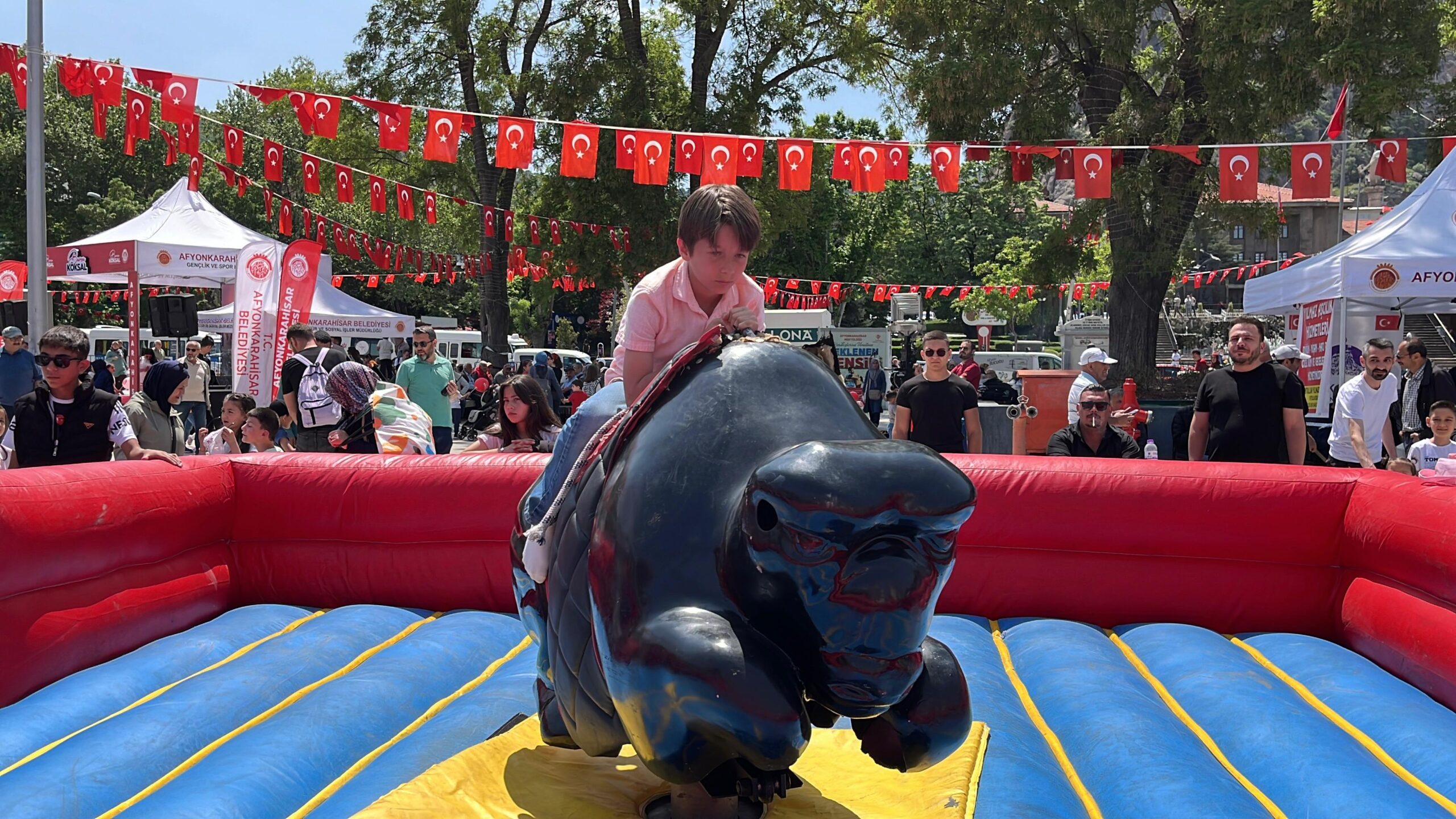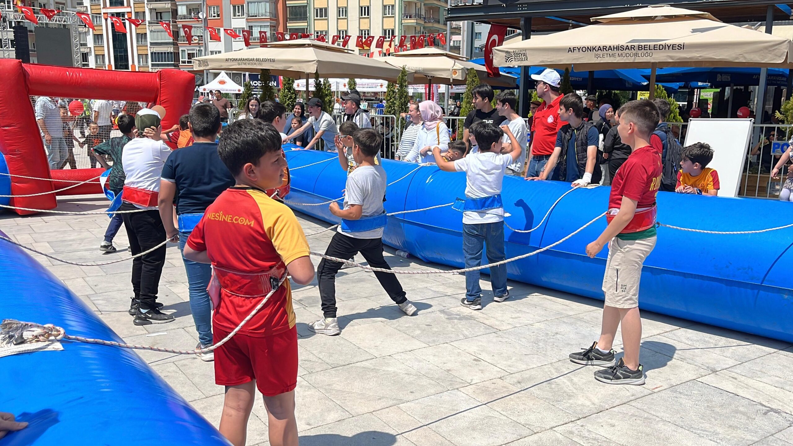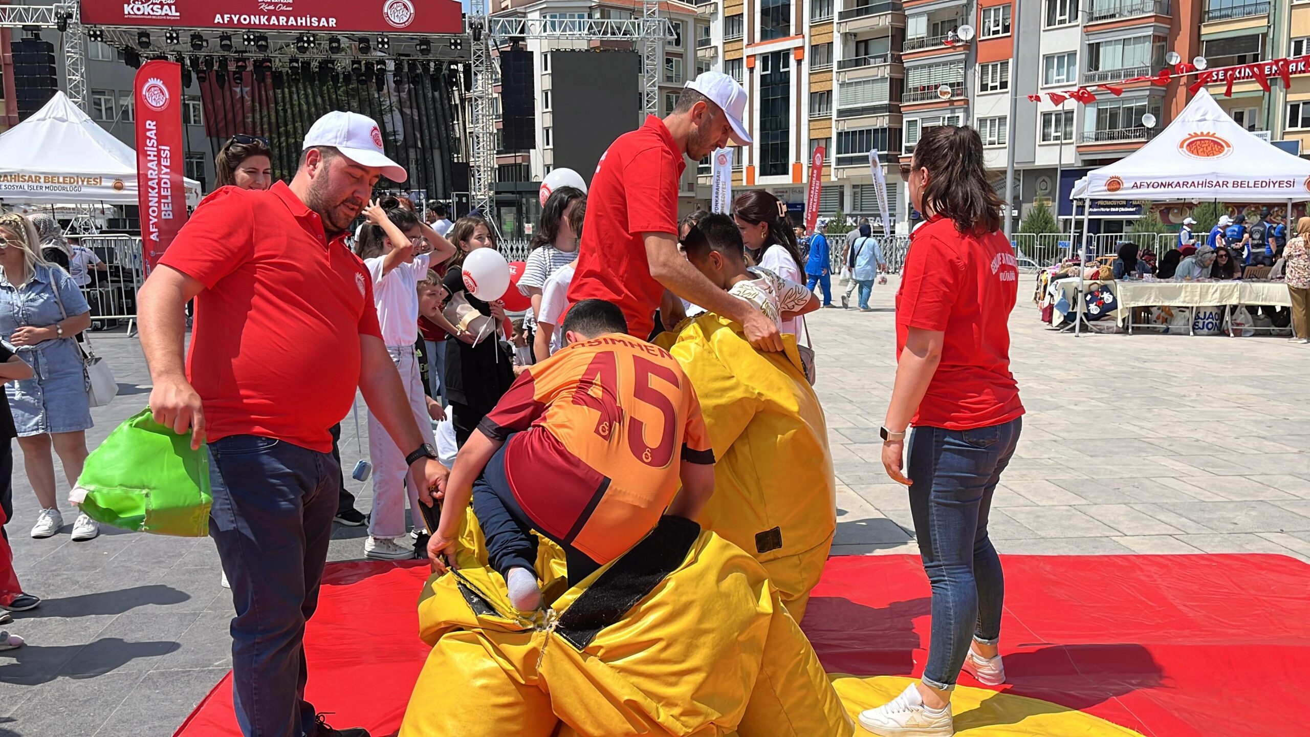19 Mayıs coşkusu Afyonkarahisar’da dolu dolu yaşandı. 19 Mayıs Atatürk’ü Anma, Gençlik ve Spor Bayramı, Afyonkarahisar Belediyesi tarafından düzenlenen birbirinden renkli etkinliklerle kutlandı. Kent meydanında gerçekleştirilen programda ödüllü yarışmalar, dart, rodeo, canlı langırt, sumo güreşi ve gladyatör oyunları gibi birçok eğlenceli aktivite vatandaşlarla buluştu. Etkinlik alanını ziyaret eden Afyonkarahisar Belediye Başkanı Burcu Köksal, hem çocuklarla hem de vatandaşlarla yakından ilgilendi. Stantları tek tek gezen Başkan Köksal, katılımcılarla bol bol hatıra fotoğrafı çektirdi. Gün boyunca süren etkinliklerde hem çocuklar hem de aileleri keyifli vakit geçirirken, belediye tarafından sunulan ikramlar ve çeşitli sürprizler de kutlamalara renk kattı.
