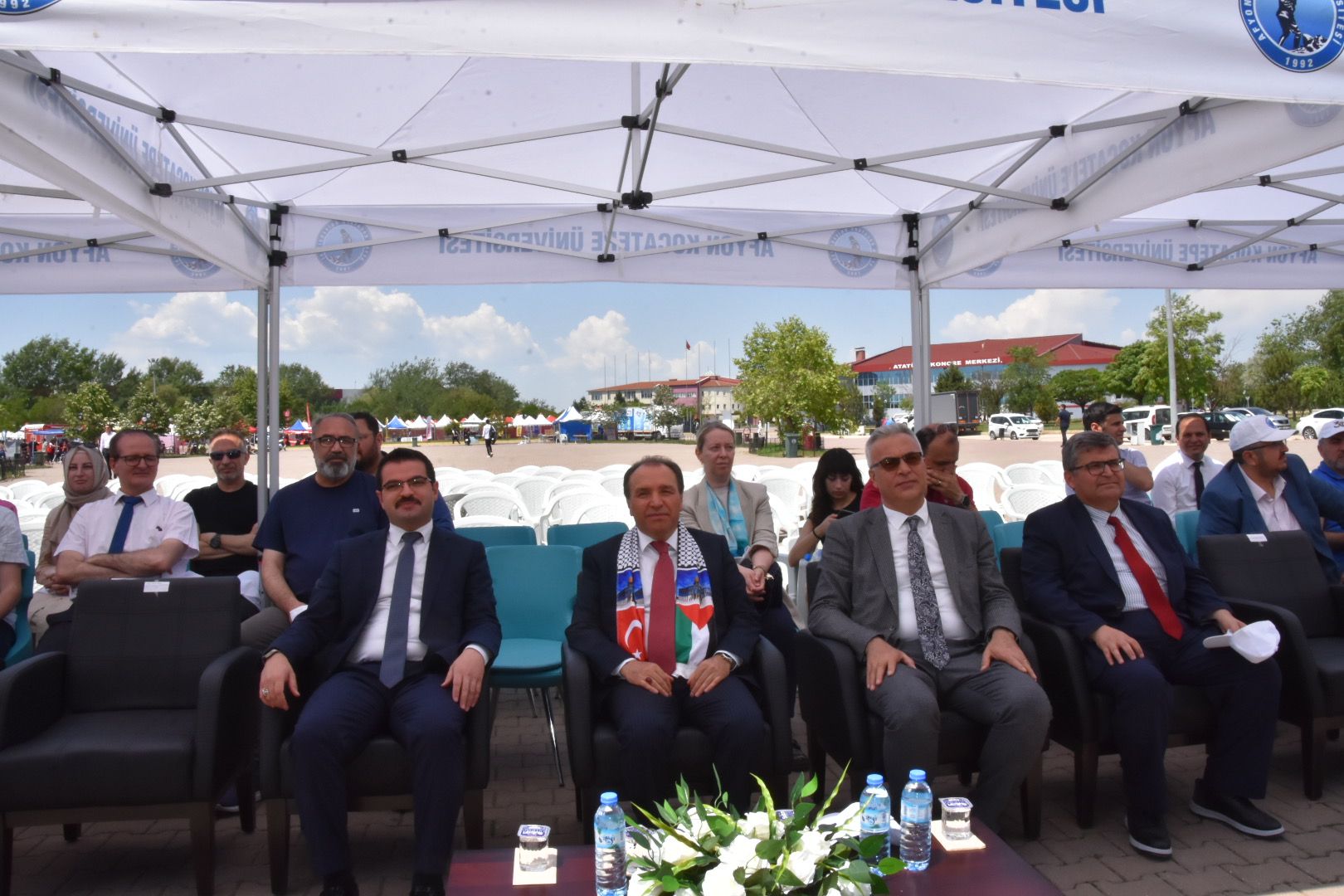 Barış Manço Şölen Alanında düzenlenen törene; Afyonkarahisar Vali Yardımcısı V. Harun Reşit Han, AKÜ Rektörü Prof. Dr. Mehmet Karakaş, Afyonkarahisar Belediye Başkan Yardımcısı Ömer Yıldız, Afyonkarahisar Sağlık Bilimleri Üniversitesi Rektör Yardımcısı Prof. Dr. Ümit Dündar, AKÜ Rektör Yardımcıları Prof. Dr. Şuayıp Özdemir, Prof. Dr. Murat Peker, Genel Sekreter İhsan Ceran, Afyonkarahisar Ticaret ve Sanayi Odası (ATSO) Yönetim Kurulu Başkanı Hüsnü Serteser, Afyonkarahisar Gençlik ve Spor İl Müdürü İsmail Hakkı Kasapoğlu, Sosyal Güvenlik Kurumu Afyonkarahisar İl Müdürü Samet Fidan, Çalışma ve İş Kurumu (İŞKUR) Afyonkarahisar İl Müdürü Ahmet Karakaya, Afyonkarahisar Esnaf ve Sanatkârlar Odaları Birliği (ESOB) Başkanı Cengiz Üstün, Tarım ve Kırsal Kalkınmayı Destekleme Kurumu Afyonkarahisar İl Koordinatörü Zülgari Özdemir, Zafer Kalkınma Ajansı İl Koordinatörü Osman Köprücüoğlu ile birlikte AKÜ yöneticileri, personeli ve öğrenciler katıldı. Eğitim-Fen Edebiyat Fakültesi önünden Barış Manço Şölen Alanına kortej yürüyüşü ile başlayan AKÜFEST’24, AKÜ Rektörü Prof. Dr. Mehmet Karakaş’ın açış konuşmasıyla devam etti. AKÜFEST’in daha önce bahar şenliği olarak AKÜ’de geleneksel olarak kutlanıldığını ifade eden Karakaş, “Baharda; bilim, kültür, sanat, spor ve eğlence temalı bir etkinlikti. 2019 yılında Rektörlük görevini devir aldıktan sonra bunu biz festival konseptinde gerçekleştirme kararı aldık. İsmini de AKÜFEST yani bilim, teknoloji, sanat ve spor festivali olarak belirledik” diye konuştu.
