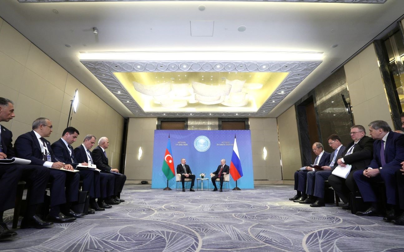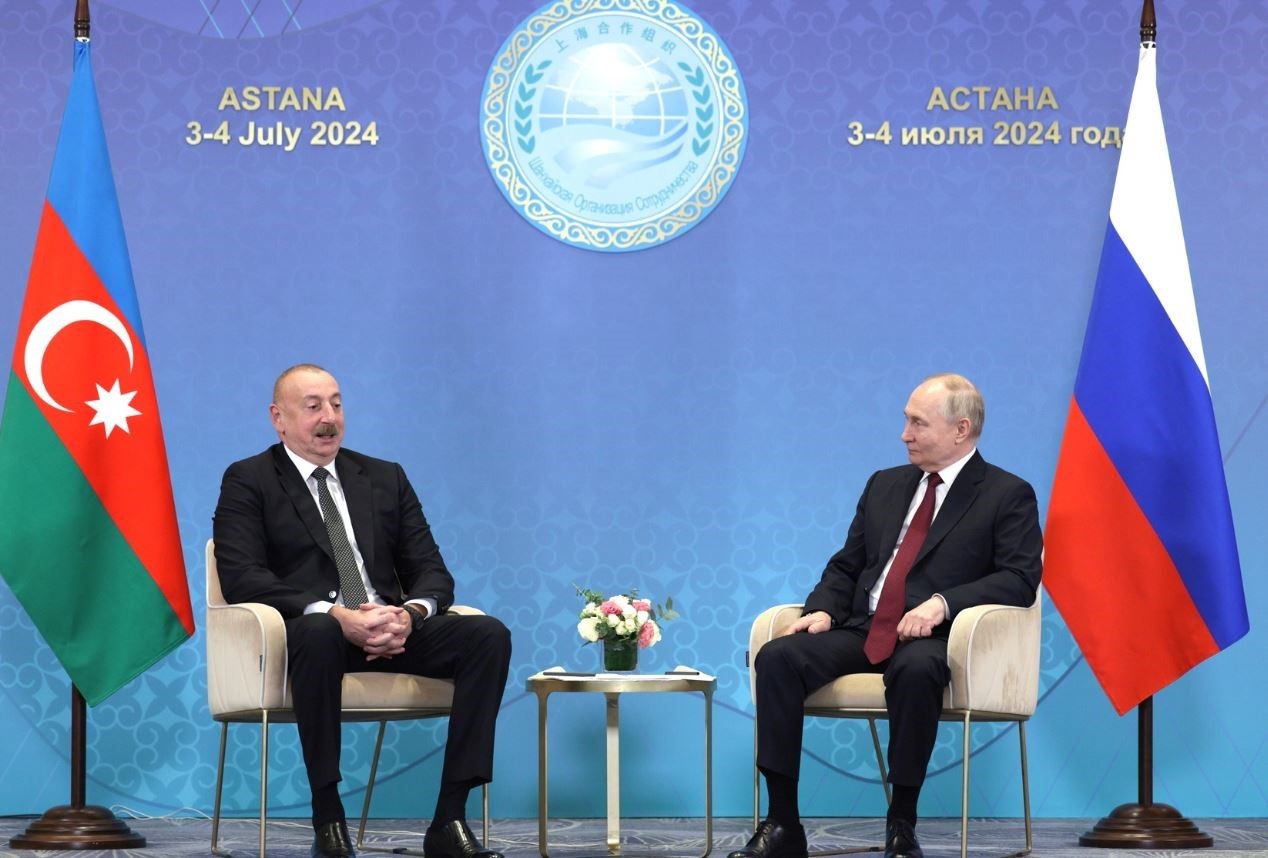 Rusya Devlet Başkanı Vladimir Putin ve Azerbaycan Cumhurbaşkanı İlham Aliyev, Astana Şanghay İşbirliği Örgütü (ŞİÖ) 24’üncü Devlet Başkanları Zirvesi’ne katılmak üzere geldikleri Astana’da görüştü.
