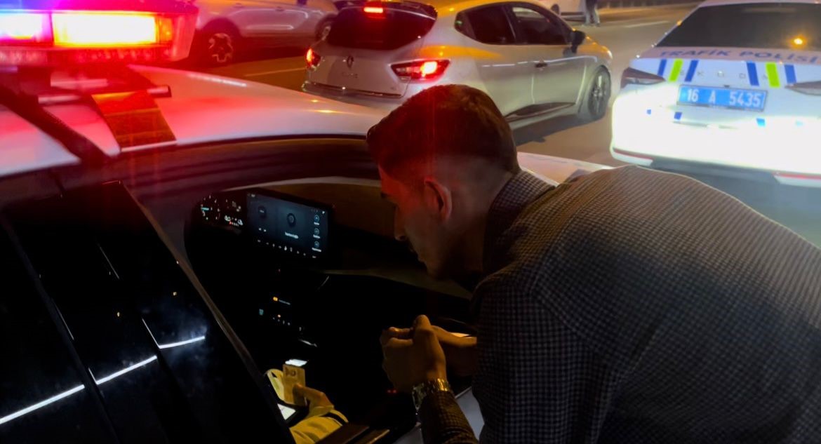 İl Emniyet Müdürlüğü Trafik Denetleme Şube Müdürlüğü ekipleri, farklı noktalarda alkol uygulamalarını aralıksız sürdürüyor. Son olarak merkez Yıldırım ilçesi Ortabağlar Mahallesi Ankara Yolu Caddesi üzerinde alkol uygulaması yapan ekipler, araçları bir bir durdurarak kontrol etti. Alkol uygulamasına giren bir sürücü, ekiplerin ehliyet istemesi sonrası ehliyetinin olmadığını söyledi. Alkolmetreyi üfleyen Uğur A. 1.12 promil alkollü çıktı. Hem ehliyetsiz hem de alkollü olan sürücü ekiplere, ‘Kurban olayım bize bir çare bulun abi’ diye sitem etti. Ekiplerden ‘Hem alkollüsün, hem de ehliyetin yok’ cevabını alan sürücü, ‘Arkadaşımın kafası çok güzel, gece kulübünden almak zorunda kaldım’ dese de cezadan kaçamadı.