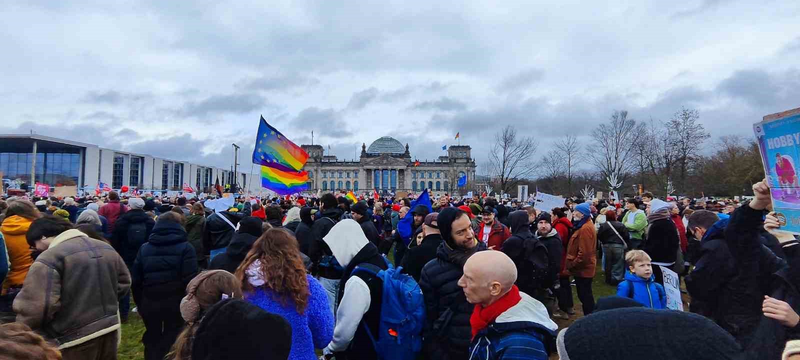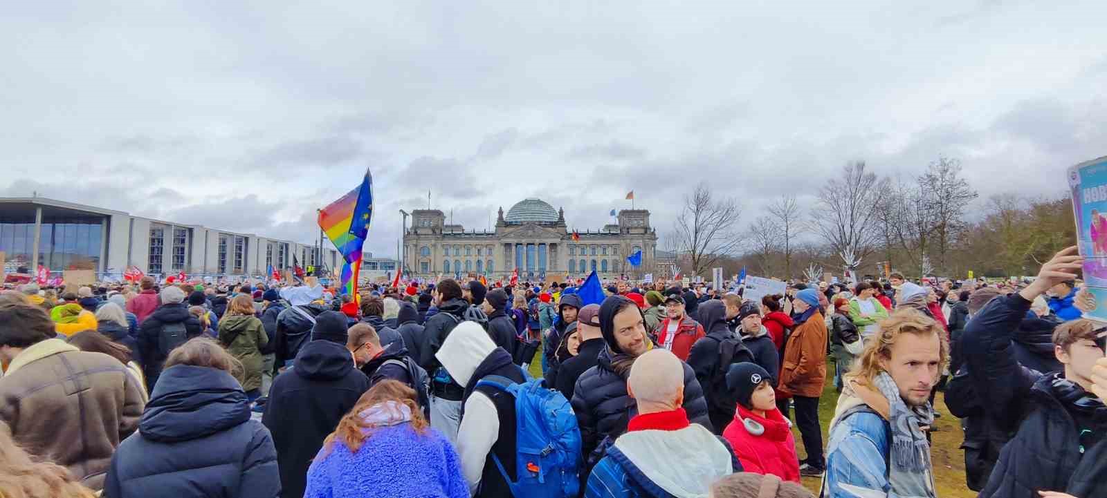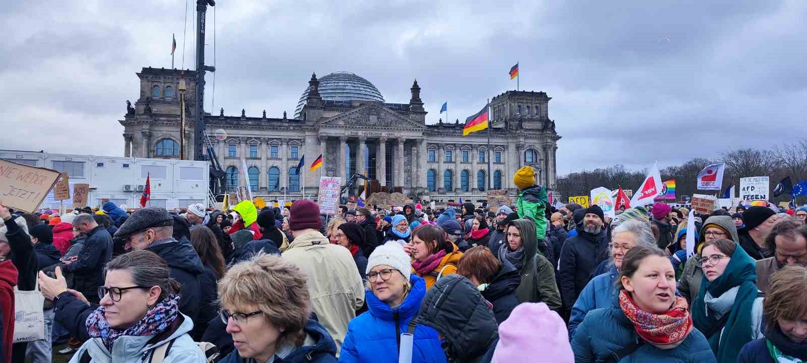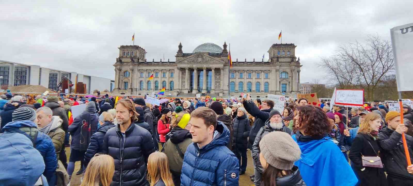 Almanya’nın başkenti Berlin’de Federal Meclis Binası (Bundestag) önünde düzenlenen mitinge katılan 150 bin kişi, ülkedeki bütün yabancıları sınır dışı etmeyi planladığı ortaya çıkan aşırı sağcı AfD Partisi’ne büyük tepki gösterdi.