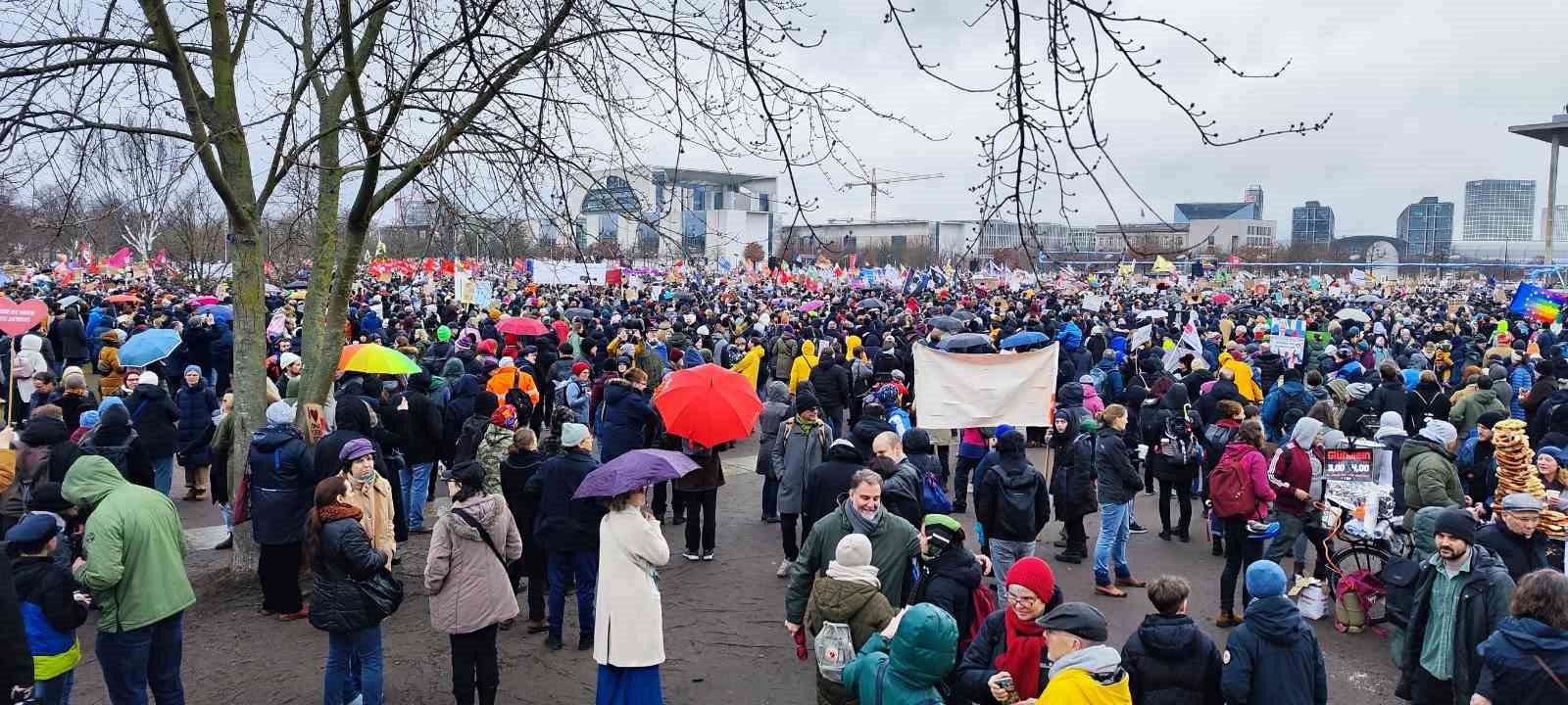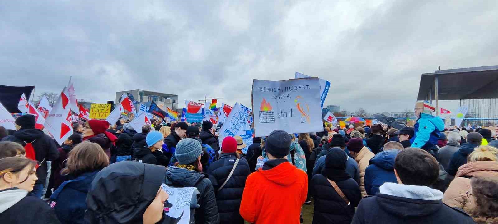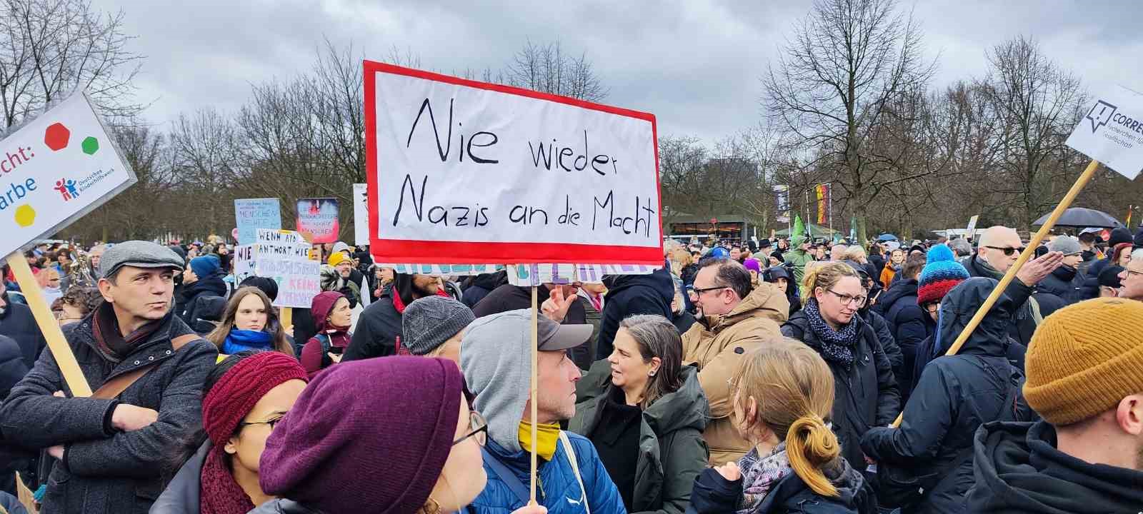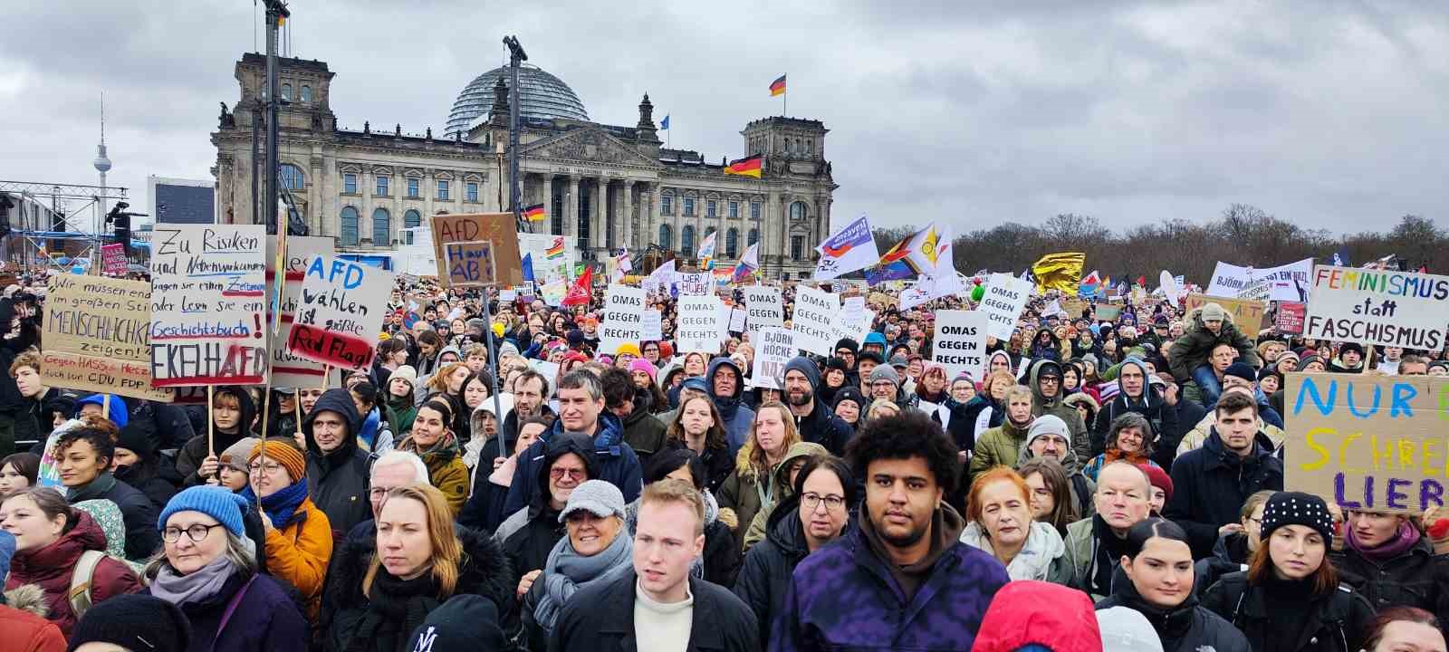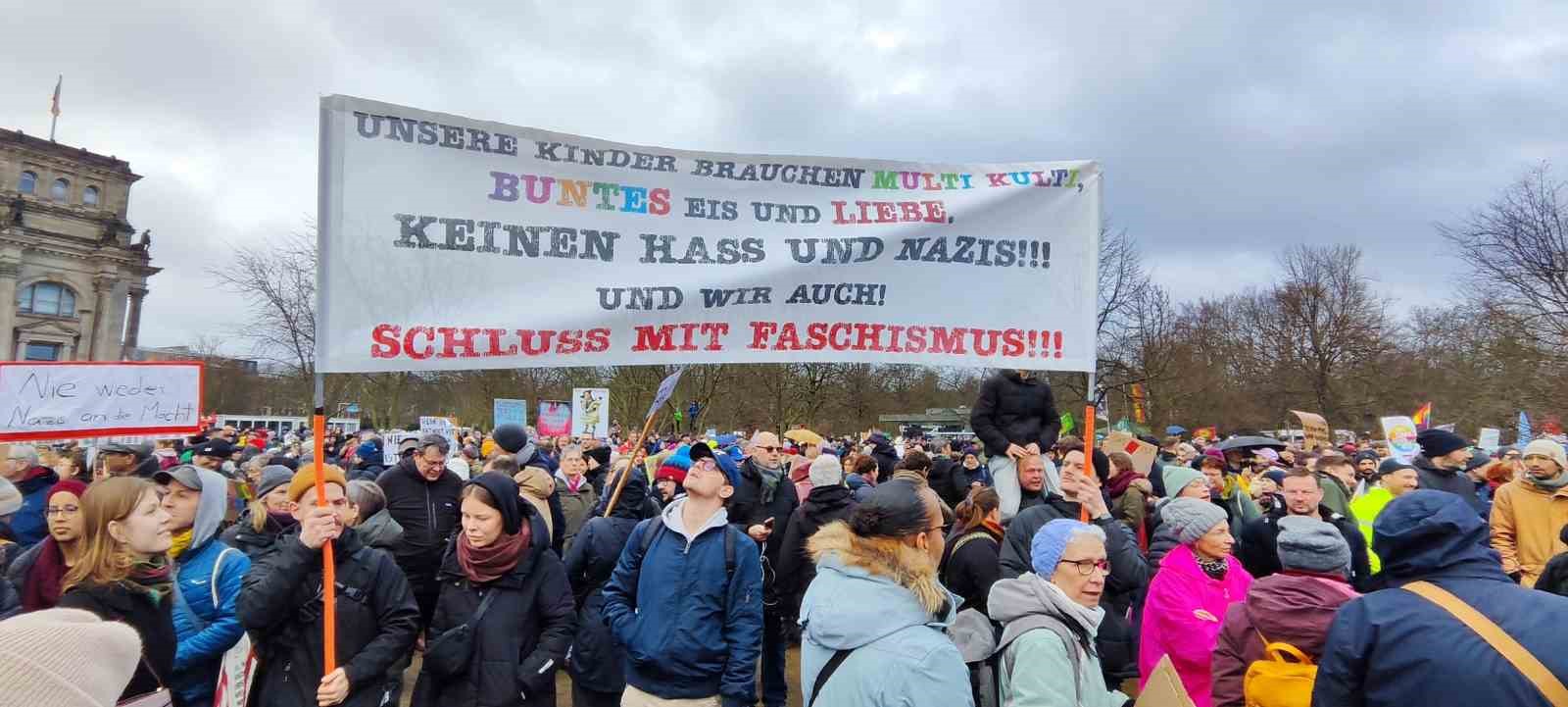 Almanya’da aşırı sağcı AfD (Almanya için Alternatif) Partisi ve ırkçılığa karşı protestolar sürüyor. AfD Partisi‘nin ülkedeki bütün yabancıları sınır dışı etme planının ortaya çıkmasının ardından başlayan protestoların devamı olarak bugün başkent Berlin’de çoğu Alman 150 bin kişinin katıldığı bir miting gerçekleştirildi.