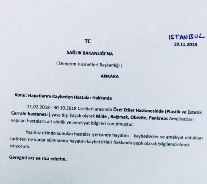 Kararda ayrıca, 6 Mayıs 2024’den itibaren Çelik’e ve çalıştığı özel hastaneye mesleğini icra edemeyeceğinin bildirilmesi, muayenehanesinde hiçbir surette mesleğini icra etmemesi, çalıştığı özel hastaneden ayrılışının yapılarak yapılacak men işleminin eş zamanlı başlangıç ve bitiş tarihinin uygulanması için gerekli belgelerin Sağlık Bakanlığı’na iletilmek üzere İl Sağlık Müdürlüğü’ne gönderilmesinin istenmişti. Öte yandan vefatla sonuçlanan ameliyatlar sonrası aileler seslerini duyurmak amacıyla süreci birçok mecrada anlatmış, Çelik’ten şikayetçi olarak hukuki süreç başlatmıştı.