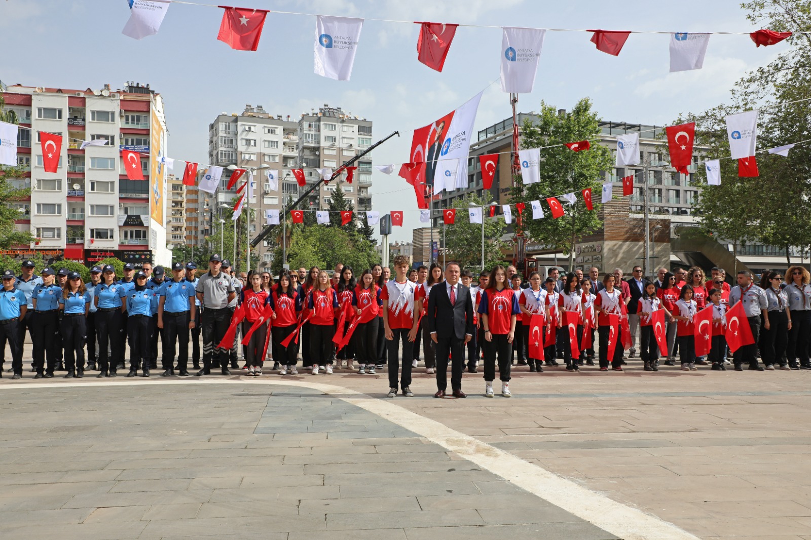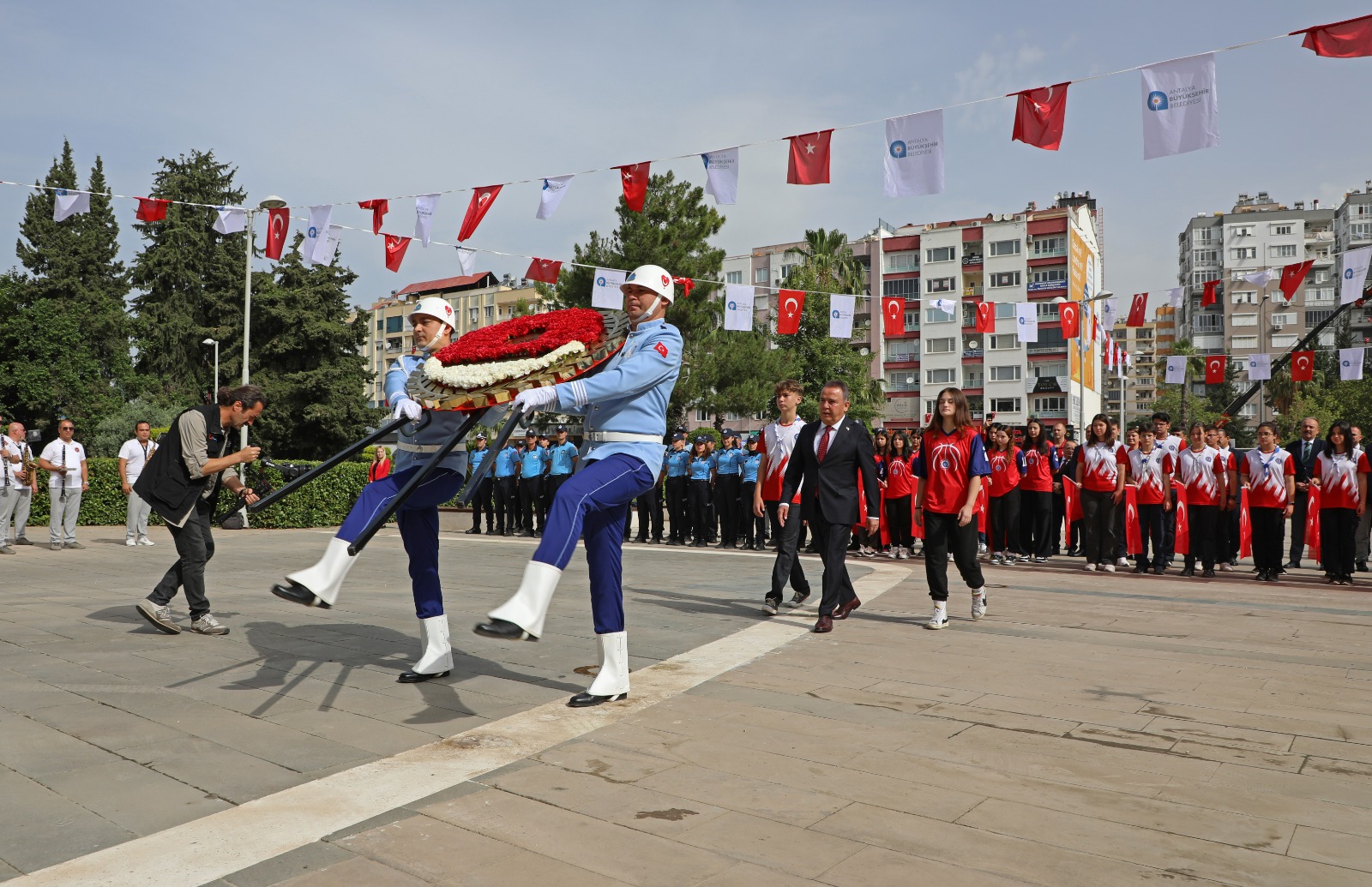 Antalya Büyükşehir Belediyesi, 19 Mayıs Atatürk’ü Anma, Gençlik ve Spor Bayramı dolayısıyla tören düzenledi. Büyükşehir Belediyesi Hizmet Binası önünde gerçekleşen törene, Başkan Muhittin Böcek, Genel Sekreter Cansel Tuncer, ASAT Genel Müdürü İbrahim Kurt, Genel Sekreter Yardımcıları, daire başkanları, zabıta personeli, ASAT personeli, Antalya Büyükşehir Belediyesi Spor Kulübü sporcuları ile Büyükşehir İzcileri katıldı.