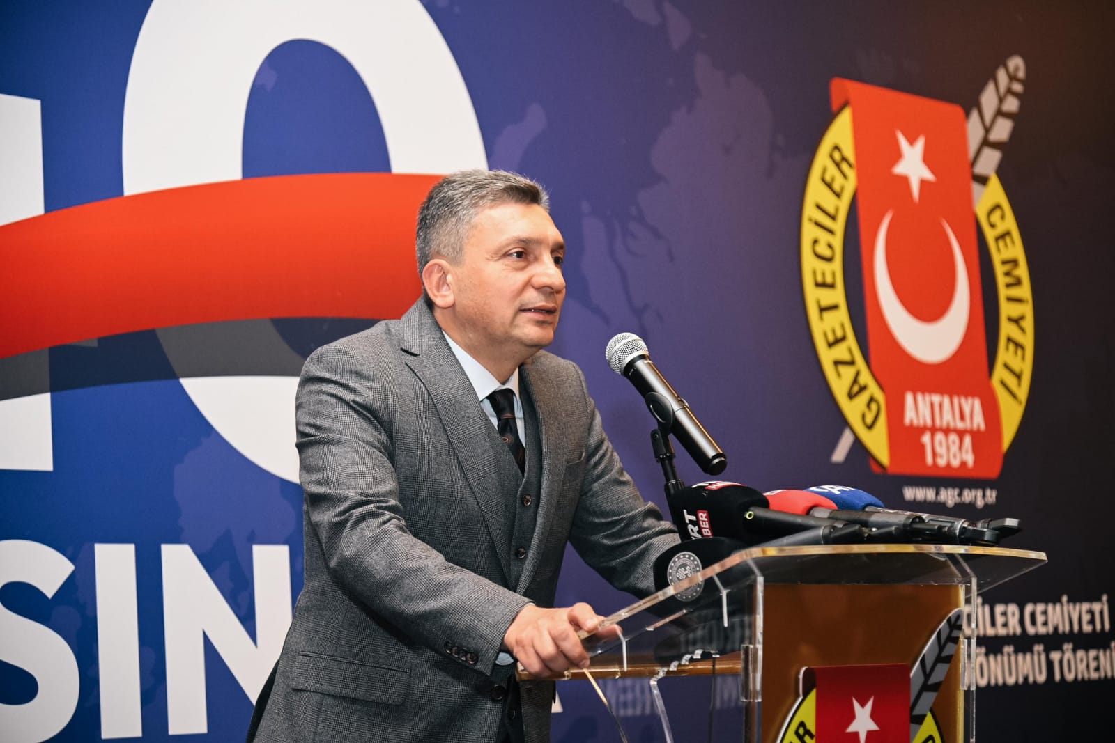Törende konuşan AGC Başkanı İdris Taş, cemiyetin gücünü meslek ilkelerinden aldığını söyledi. AGC’nin Akdeniz Gazeteciler Federasyonu’nun da kurucusu olduğunu belirten Taş, Cumhuriyet’in 100. yılında tarihi Kaleiçi’nde Türkiye’nin en şık basın galerisini açtıklarını, her gün çok sayıda turistin gezdiğini anlattı.