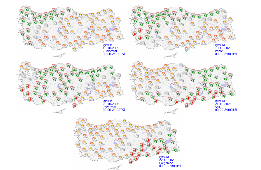 Meteoroloji Genel Müdürlüğü’nün (MGM) son tahminlerine göre, Türkiye’nin kuzeybatı kesimlerinde hafta sonu yer yer çok bulutlu bir hava bekleniyor. Marmara, Kuzey Ege kıyıları ve Batı Karadeniz’in batı kıyılarında aralıklı sağanak yağışlar görülecek. Ülkenin diğer bölgelerinde ise hava genellikle parçalı ve az bulutlu olacak. Orta ve Doğu Karadeniz kıyılarında sabah ve gece saatlerinde pus ve yer yer sis etkili olacak.