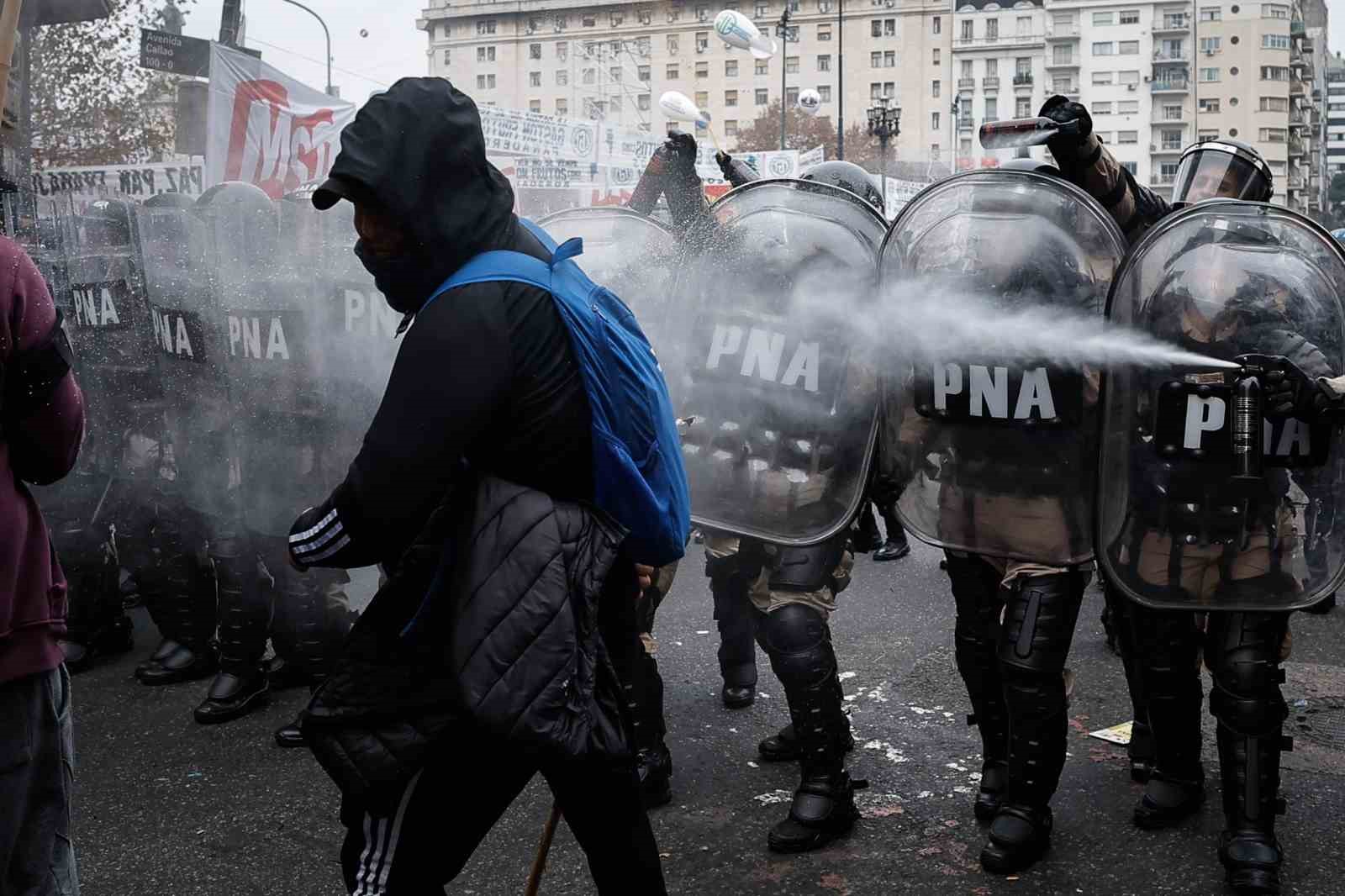 Arjantin’de Devlet Başkanı Javier Milei hükümetinin hazırladığı ekonomik reform paketine karşı gerçekleştirilen gösterilerde polis ile protestocular arasında çatışma çıktı. Sokaklar savaş alanına döndü.