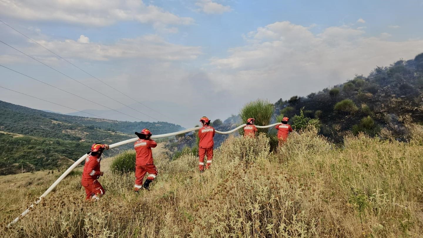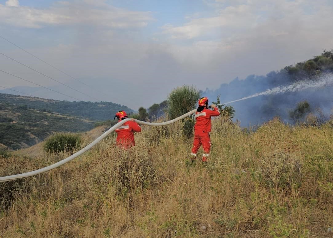 Balkan ülkesi Arnavutluk’un Yunanistan sınırında iki gün önce sıcak hava dalgasının etkisiyle çıkan orman yangınları devam ediyor. Dropull Belediyesine bağlı Grapsh köyünde ve Finiq Belediyesine bağlı Kardhikaq köyünde itfaiye ekiplerinin söndürme çalışmalarına ordu da destek veriyor. Alevlerin evlere yayılması önlenirken, söndürme çalışmaları sürüyor.