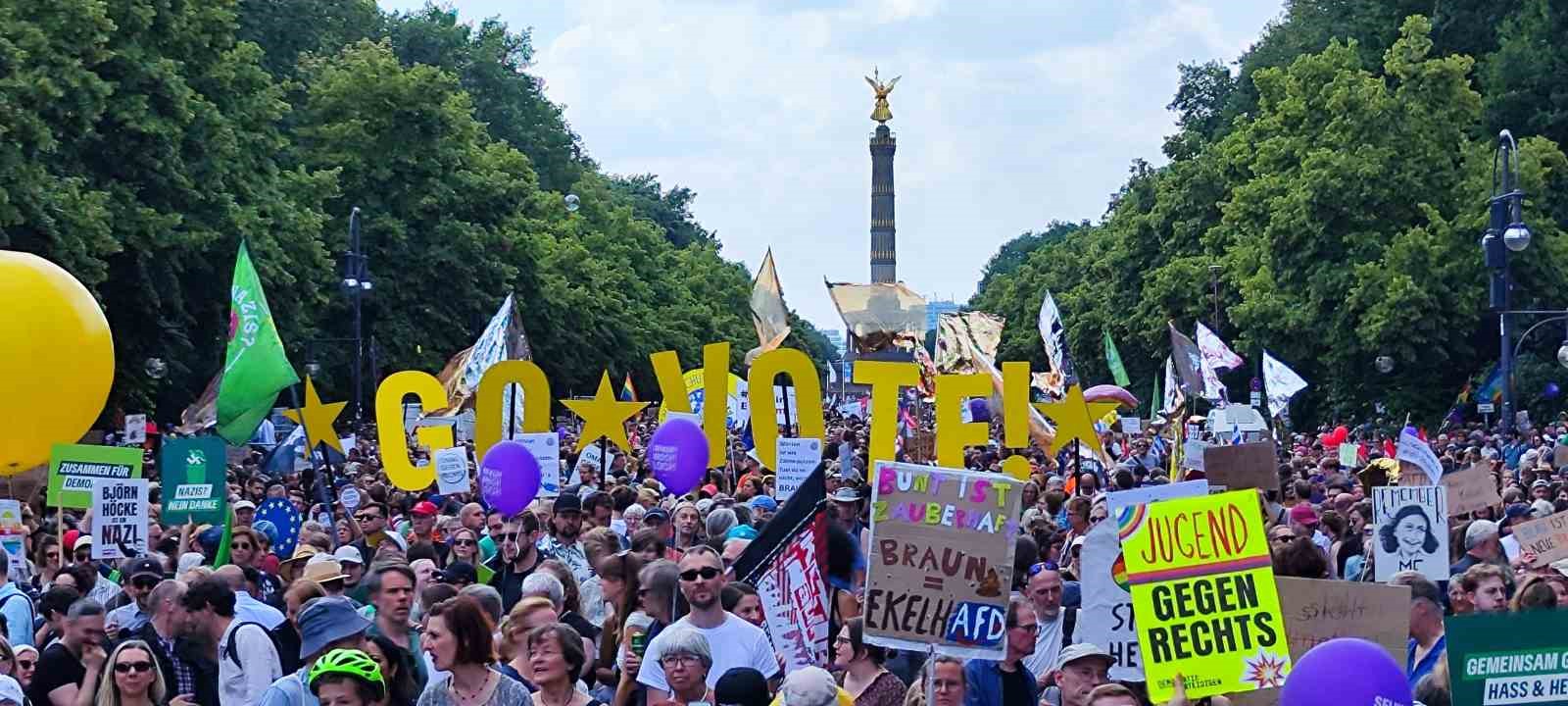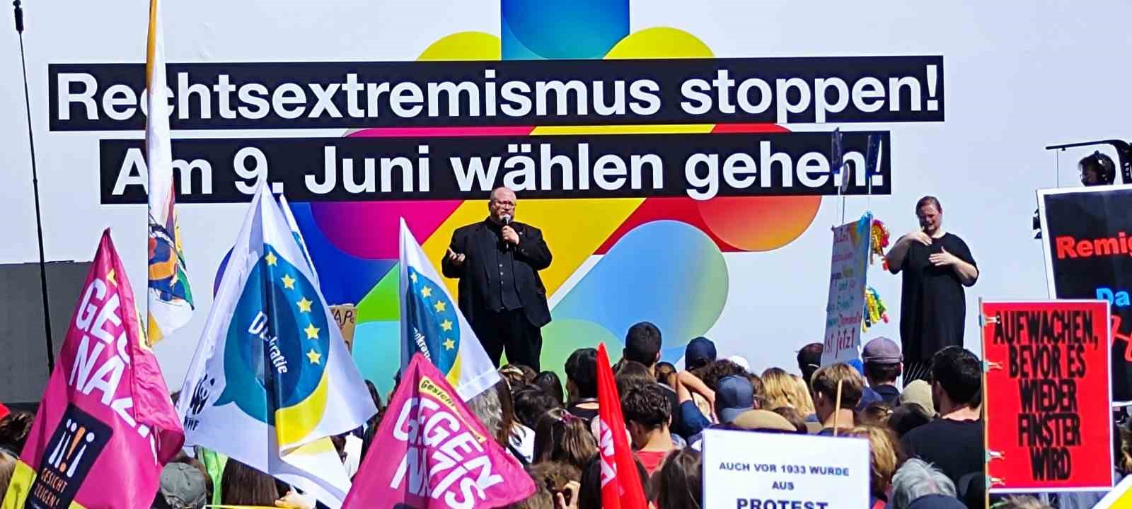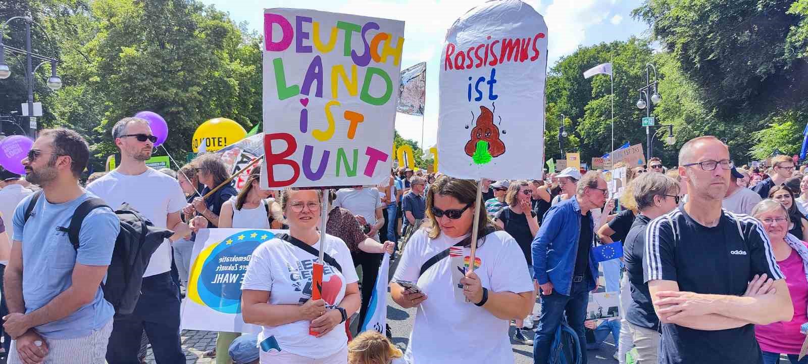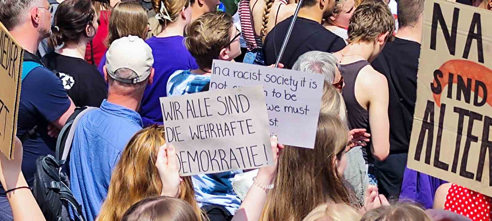 Almanya’da, demokratik değerlerin aşırı sağcı Almanya için Alternatif Partisi (AfD) ve diğer sağcı aşırılıkçılar tarafından saldırıya uğradığı uyarısı yapılan konuşmalarda, “Kendinden emin bir toplum olarak, sessiz durmuyoruz. Demokratik yelpazenin tamamında onlara karşı birleşiyoruz. Yarın yapılacak seçimlerden hemen önce, ırkçılığa ve sağcı aşırılıkçılara karşı güçlü bir mesaj göndermek için sokaklara çıktık. Oy verin ve demokrasiyi seçin” denildi.