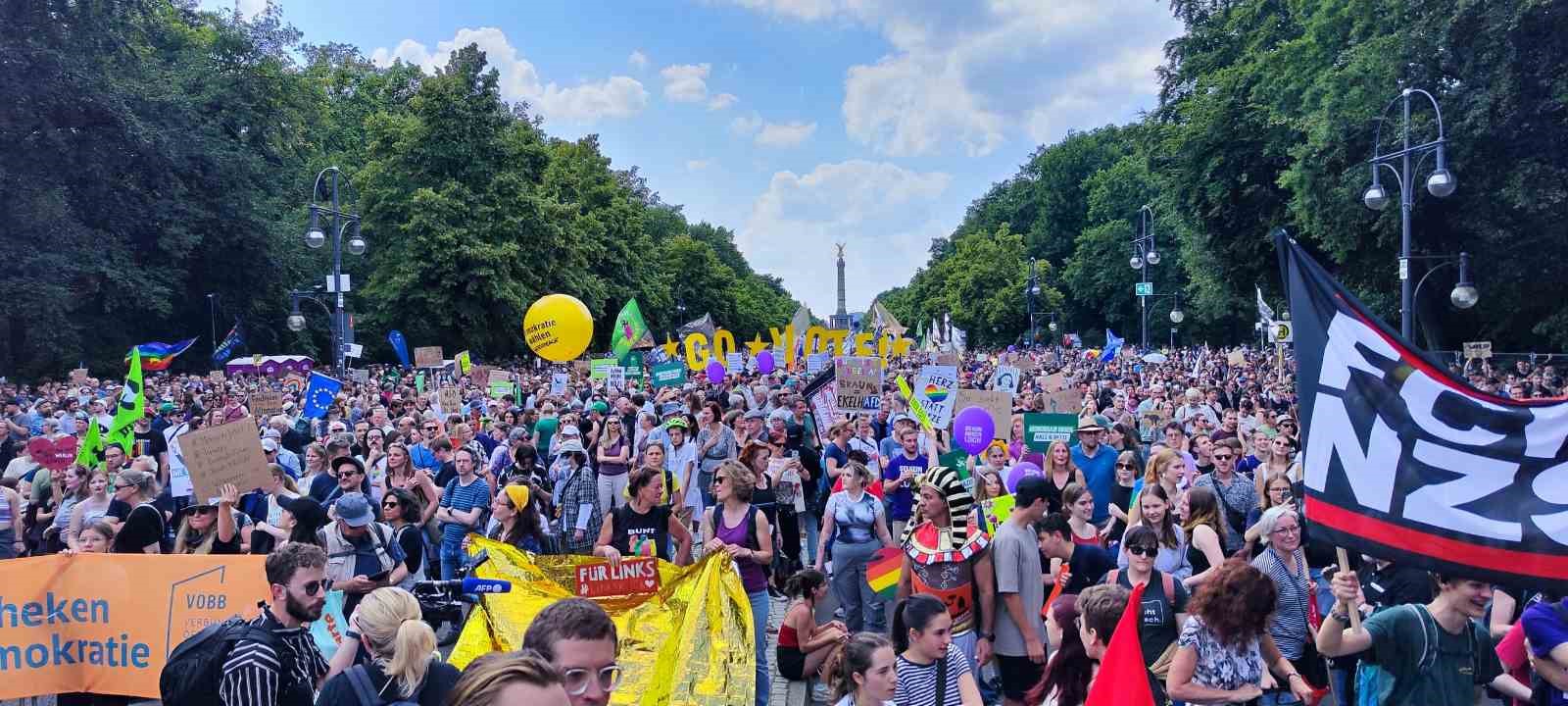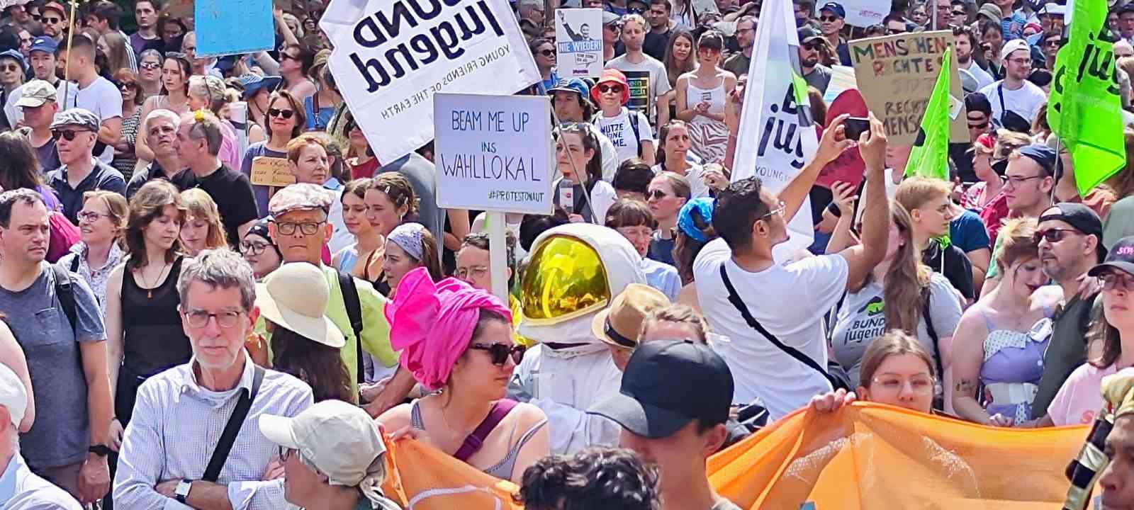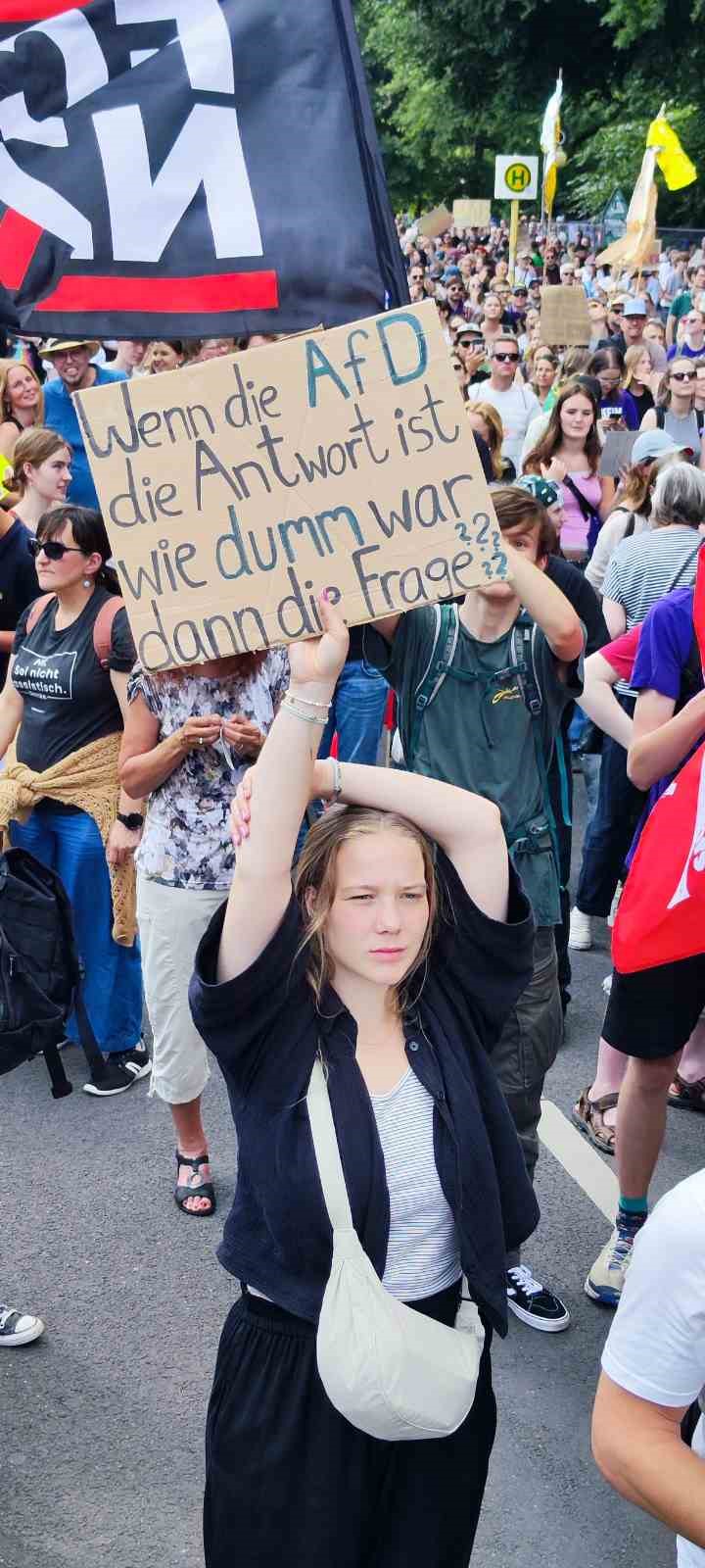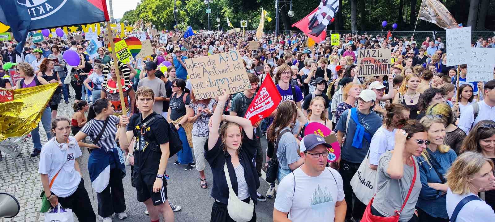 Almanya’da, demokratik değerlerin aşırı sağcı Almanya için Alternatif Partisi (AfD) ve diğer sağcı aşırılıkçılar tarafından saldırıya uğradığı uyarısı yapılan konuşmalarda, “Kendinden emin bir toplum olarak, sessiz durmuyoruz. Demokratik yelpazenin tamamında onlara karşı birleşiyoruz. Yarın yapılacak seçimlerden hemen önce, ırkçılığa ve sağcı aşırılıkçılara karşı güçlü bir mesaj göndermek için sokaklara çıktık. Oy verin ve demokrasiyi seçin” denildi.