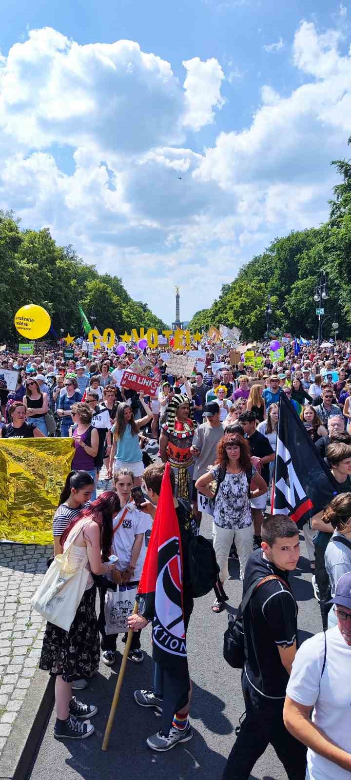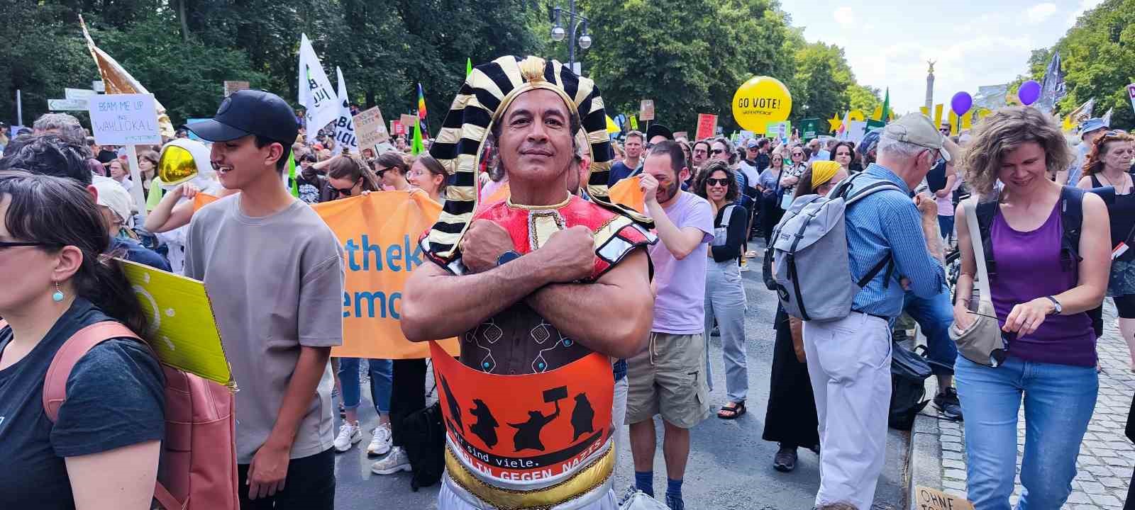 Öte yandan mitingde zaman zaman farklı müzik grupları da sahne aldı. Büyük bir kısmı gençlerden oluşan göstericiler, üzerinde “Demokrasi için hep beraber”, “Oy vermeye git!”, “Naziler alternatif olamaz”, “Almanya renklidir” gibi sloganlar yazan pankartlar taşıdı. Bazı göstericiler astronot kostümü, firavun kostümü gibi farklı kıyafetlerle mitinge gelerek renkli görüntüler oluşturdu.