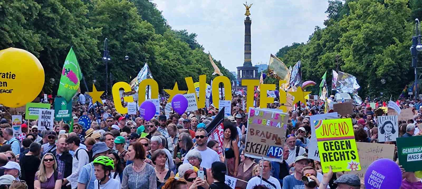 Almanya’nın başkenti Berlin başta olmak üzere birçok şehrinde düzenlenen “Aşırı sağı durdur, demokrasiye sahip çık” mitingiyle Avrupa’da artan ırkçılığa dikkat çekildi.