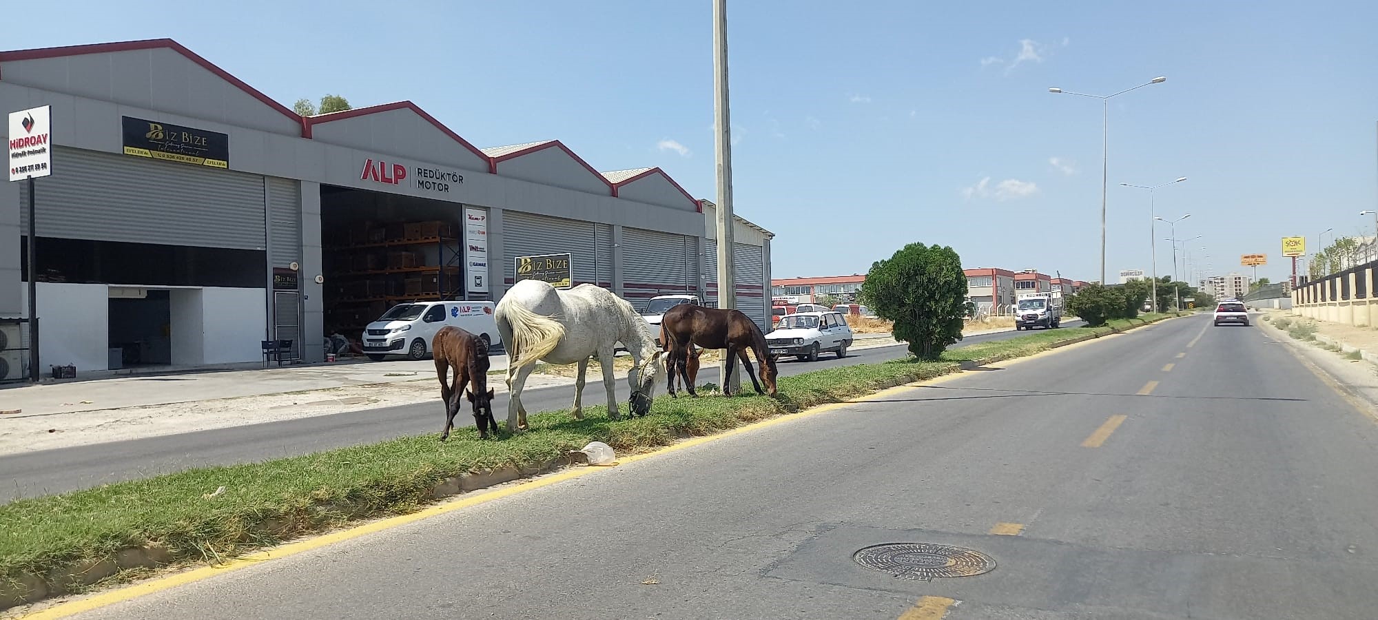Aydın’da ana yollarda başıboş şekilde gezen atlar, tehlike saçıyor. Yol kenarlarında otlayarak sürücüleri tedirgin eden başıboş atlar, adeta trafik kazalarına davetiye çıkarıyor. Özellikle karayoluna inerek yol kenarında ve refüjlerde otlayarak karnını doyurmaya çalışan başıboş hayvanlar hem trafiği tehlikeye sokuyor hem de kazalarda telef oluyor. Başıboş hayvanların en fazla olduğu yerlerden biri olan Efeler ilçesi Kocagür Mahallesi yakınlarında trafik ekipleri kazaları önlemek amacıyla sürekli denetim yapıp başıboş hayvanları bölgeden uzaklaştırıyor. Son olarak Doğu Çevre Bulvarı üzerinde refüjde otlayan başıboş 3 at, yolu kullanan sürücülere zor anlar yaşattı. Trafikte seyir halindeki sürücüler, bir anda karşılarında atları görünce şaşkınlıklarını gizleyemezken, tedirgin olan sürücüler kaza yapmamak için dikkatli olmaya çalıştı. Trafik kazalarına davetiye çıkaran başıboş atların hem korunması hem de vatandaşların zarar görmemesi için gerekli çalışmaların yapılmasını isteyen vatandaşlar ise yetkililerden yardım istedi.