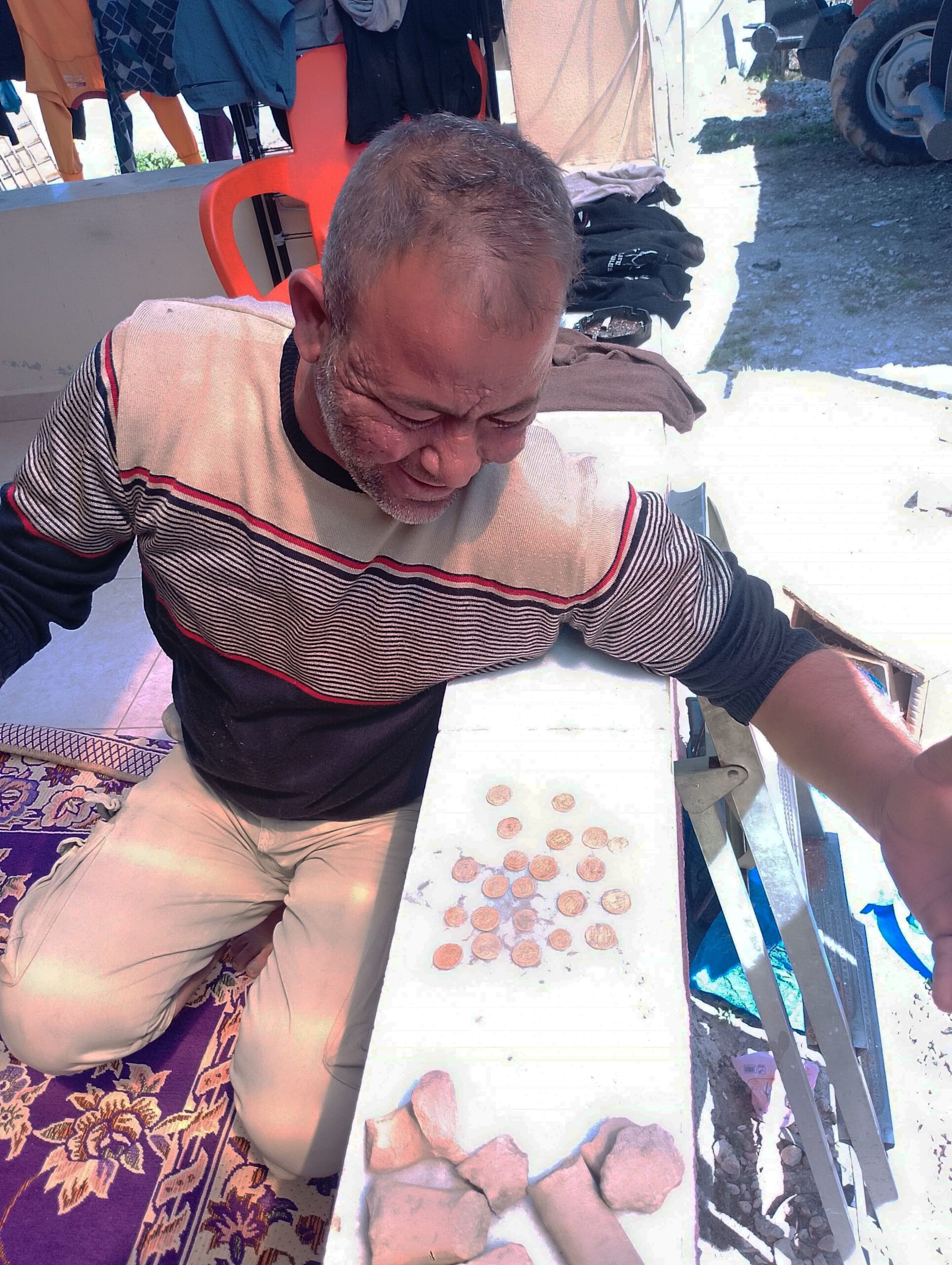 İçinden altın çıkan küp karşısında şaşırdığını ifade eden çiftçi İsmet Kaya, 22 adet altın sikkeyi ekiplere teslim etmenin memnuniyeti yaşadığını belirterek, “Zeytinlerimiz daha iyi olsun diye traktörümüzle bahçeyi sürüyordum. O esnada çapaya bir tane kırık testi denk geldi, inip baktığımda içinde altın vardı. İçinde altın sikke vardı, onları aldım ve devletimize teslim ettim. İçerisinden 22 tane Bizans dönemine altın sikke çıktı. Biz zeytin hasadının iyi olmasını beklerken topraktan altın sikke hasat ettik bu yıl. Memnunuz, devletimiz memnun. Bizler çok şaşırdık, mahallede yaşayanlar olarak. Bütün akrabalarımız bizleri aradı, bütün akşam telefonlarımız susmadı. Devlete teslim etmekle en iyisini yaptın diyenler de oldu, farklı şeyler söyleyenler de oldu. Niye teslim ettin, niye kuyumcuya satmadın, daha iyi para ederdi diyenler oldu. Biz tarihimizin ortaya çıkması için bunları devletimize teslim ettik. Antakya ilçesindeki Saçaklı Mahallemiz tarihi açıdan zengin” dedi.