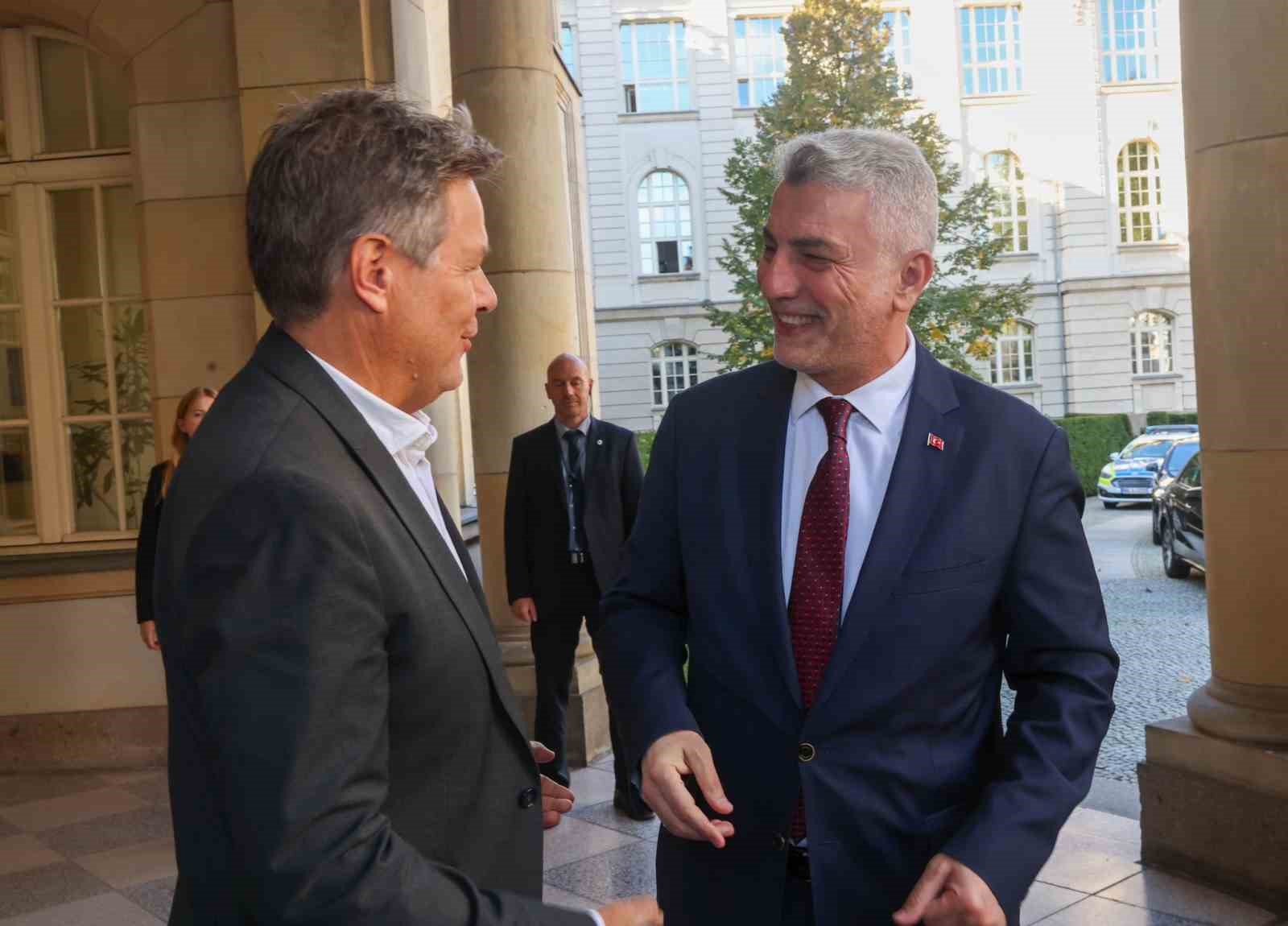 Ticaret Bakanı Ömer Bolat, Berlin’de Almanya Ekonomi ve İklim Koruma Bakanı Dr. Robert Habeck ile görüştü. Bolat, “Almanya ile iş birliği alanlarımızı çeşitlendirmek, Türkiye’nin AB tedarik zincirlerine olan yakınlığı ve entegrasyonu da dikkate alındığında her iki taraf için de önemli kazanımlar sunmaya devam edecektir” dedi.