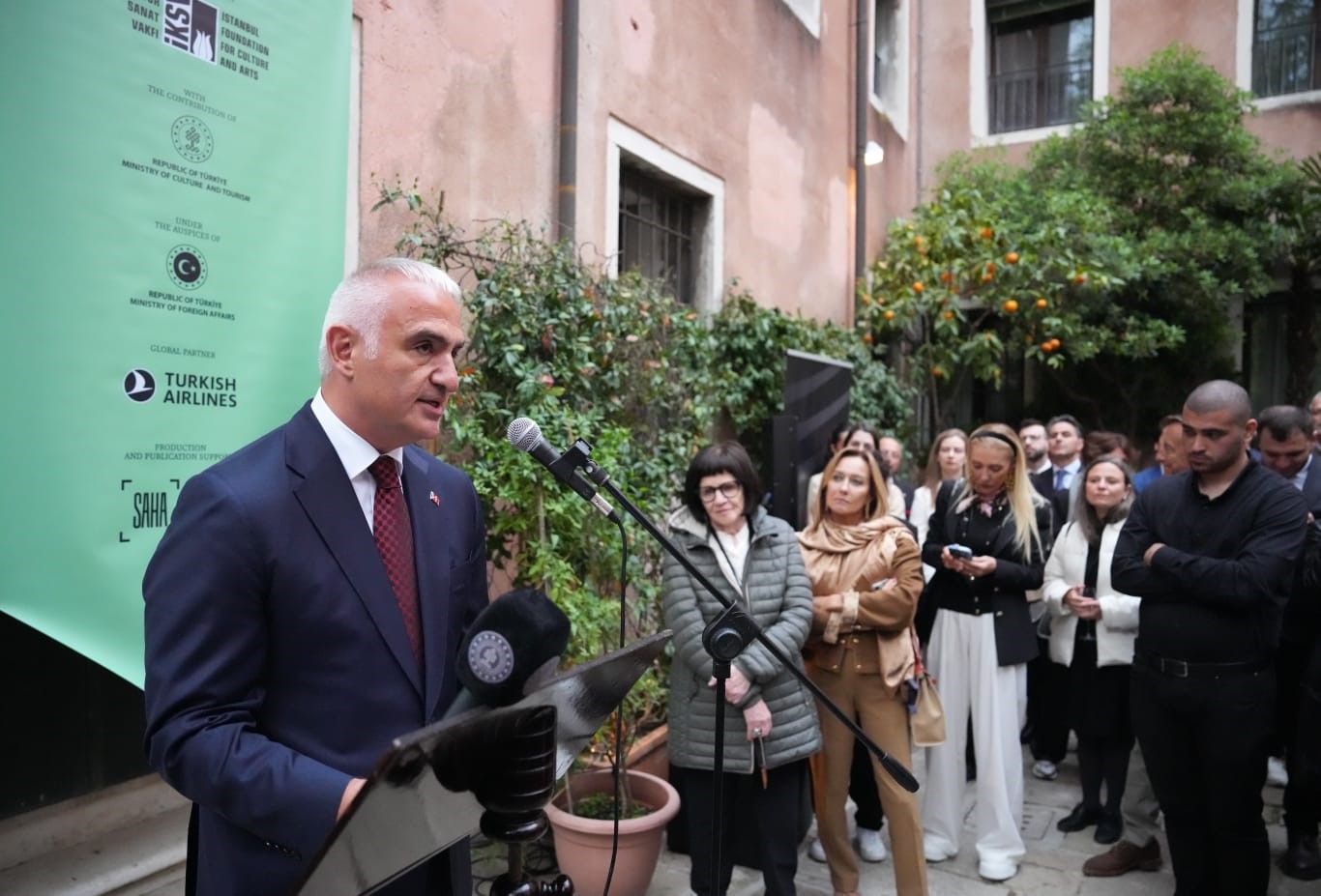 Ersoy bienalde yaptığı konuşmada, dünyanın dört bir yanından sanatçıların bir araya geldiği, farklı kültürlerin ve sanat akımlarının buluştuğu bienalin sanatın evrensel dilini konuşmak, kültürel etkileşimi ve anlayışı derinleştirmek için önemli bir fırsat olduğunu söyledi. Türkiye olarak sanatın bu güçlü platformunda yer almanın ve Türk kültürel mirasını uluslararası alanda tanıtmanın büyük önem taşıdığını belirten Bakan Ersoy, “Venedik Bienali, bu anlamda sanatçılarımıza uluslararası bir platform sağlayarak, Türkiye’nin kültürel zenginliğini ve sanatının çeşitliliğini dünyaya gösterme imkanı da sunmaktadır. Bizler de sanatçılarımızın eserlerini sergilemek, Türk sanatını uluslararası alanda tanıtmak ve sanatçılarımıza destek olmak adına gerçek bir çaba gösteriyoruz” dedi.