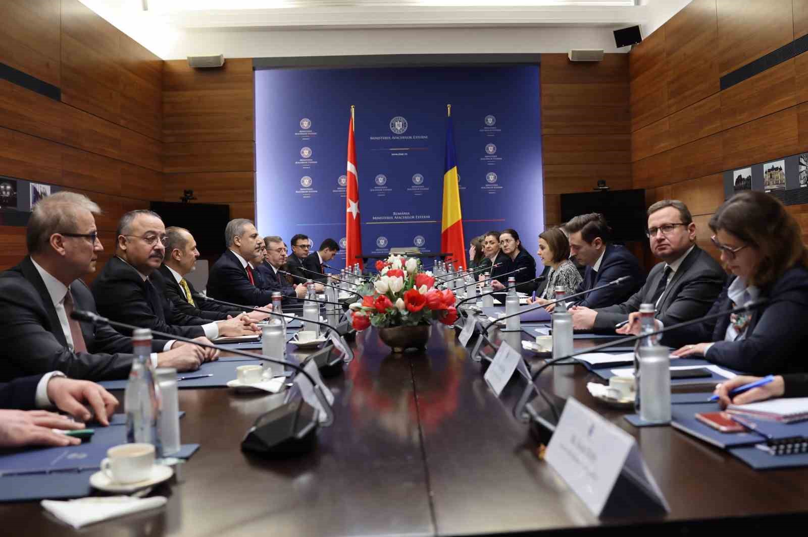 Dışişleri Bakanı Hakan Fidan, Romanya’daki temaslarına devam ediyor. Bakan Fidan, Rumen mevkidaşı Luminita Odobescu ile başkent Bükreş’te bir araya geldi. İki bakan görüşmenin ardından ortak basın toplantısı düzenledi. Romanya’da bulunmaktan memnuniyet duyduğunu kaydeden Bakan Fidan, Odobescu ile hem baş başa hem de heyetler arası verimli bir görüşme yapıldığını kaydetti. Bakan Fidan, iki ülke ilişkilerin ele alındığını ifade ederek, “Ülkelerimiz arasındaki ilişkilerin arasındaki ilişkilerin temelinde karşılıklı güven anlayışı bulunmaktadır. Stratejik ortaklık, NATO müttefikliği ve Karadeniz’e komşuluk ilişkilerimizi tanımlayan başlıca unsurlardır” ifadelerini kullandı.