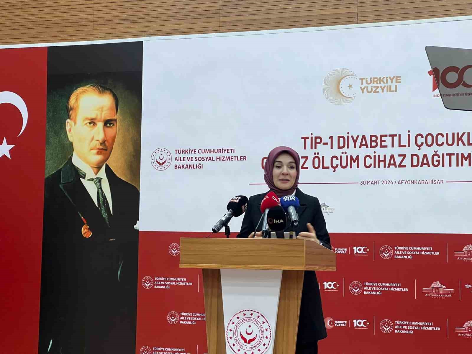 Aile ve Sosyal Hizmetler Bakanı Mahinur Özdemir Göktaş, diyabetin çocukların ve ailelerinin hayat kalitesini etkileyen ciddi bir hastalık olduğunu kaydederek, “Çocuklarımızın canı çok kıymetli, Tip 1 diyabet karşısında çocuklarımıza ve ailelerimize destek olmak için çalışmalar yürütüyoruz. Bu çerçevede, Tip 1 diyabet tanısı almış ailelerin çocukları için glikoz ölçüm cihazı veriyoruz” dedi.