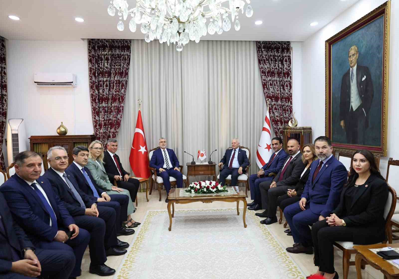 Çalışma ve Sosyal Güvenlik Bakanı Vedat Işıkhan ise kabulde yaptığı konuşmada, KKTC ziyaretinde kendilerini kabul etmesinden ötürü Töre’ye teşekkürlerini sundu. “Kıbrıs Türkü kardeşlerimizin gönlümüzde yeri her zaman ayrıdır” diyen Işıkhan, her platformda Kıbrıs Türklerinin hakkını ve hukukunu gözeten bir dış politika anlayışına sahip olduklarını belirtti. Kıbrıs meselesinde Cumhurbaşkanı Ersin Tatar’ın iki devletli çözüm vizyonuna desteklerini yineleyen Işıkhan, Kıbrıs meselesinde yeni müzakere sürecine başlanabilmesi öncesinde Kıbrıs Türk halkının egemen eşitliği ve eşit uluslararası statünün tescil edilmesi gerektiğini muhataplarına her vesileyle anlattıklarını söyledi. BM Genel Sekreteri’nin Kıbrıs Konusunda Şahsi Temsilcisi Maria Angela Holguin Cuellar’ın görevinin sona ermesine 1 hafta kaldığını belirten Işıkhan, “Şahsi Temsilci’nin görev süresinin sonunda tarafsız bir değerlendirme yapmasını ve raporunda sahadaki gerçekleri samimiyetle yansıtmasını bekliyoruz” dedi.