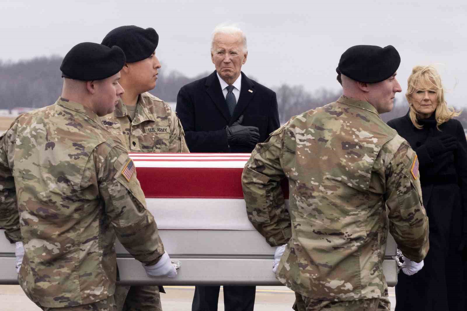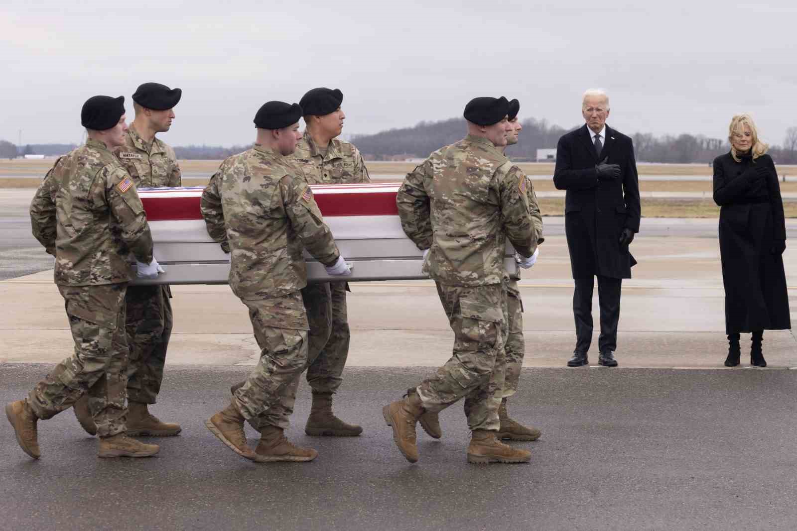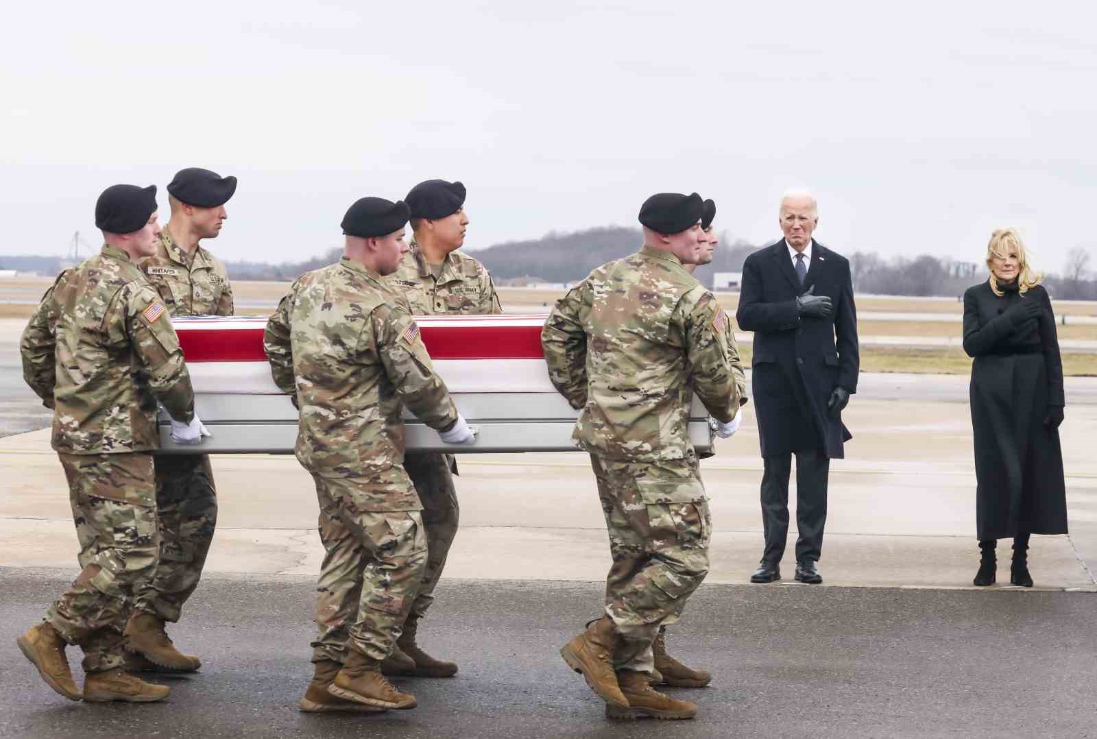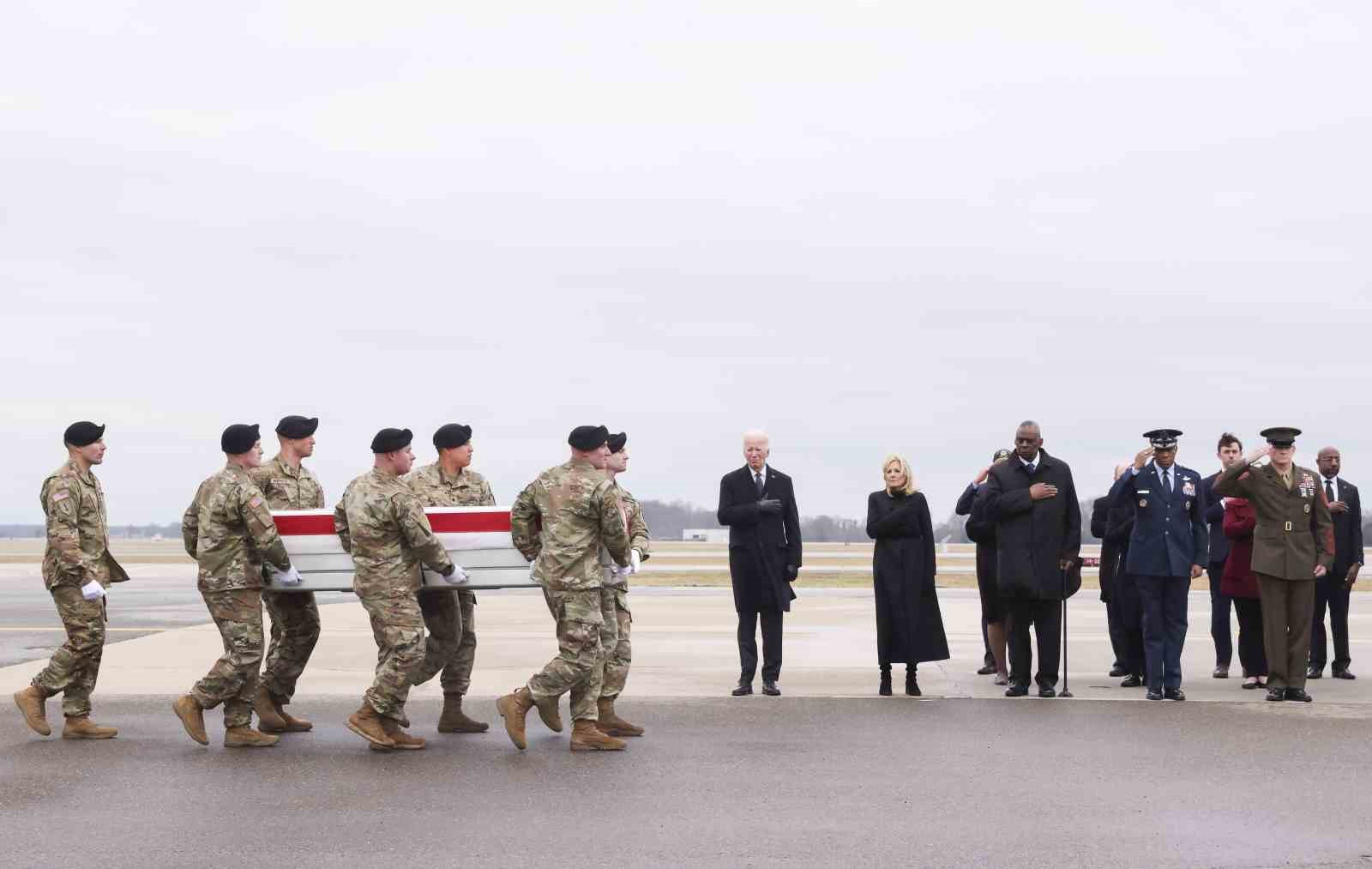 ABD Başkanı Joe Biden, Ürdün’deki dron saldırısında hayatını kaybeden 3 ABD askerinin cenazelerinin ülkeye getirilmesinin ardından Delaware eyaletindeki hava kuvvetleri üssünde düzenlenen askeri törene katıldı.