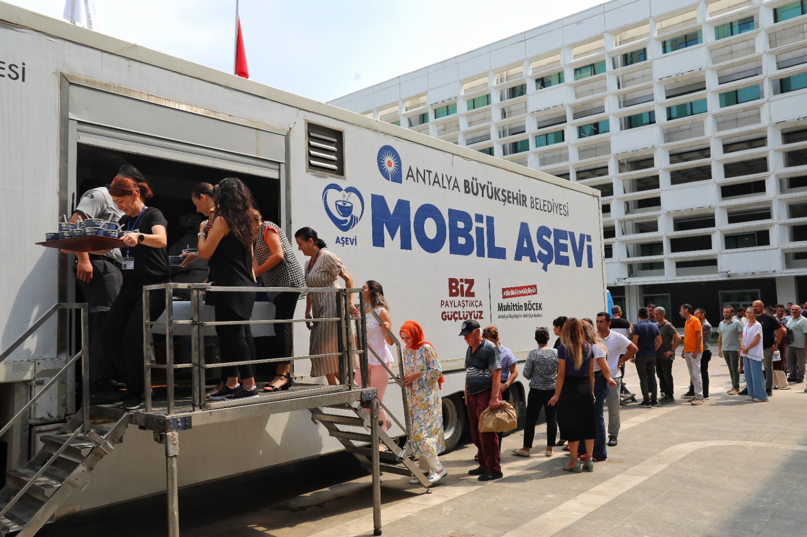 Sosyal Hizmetler Dairesi Başkanlığı’na bağlı Aşevi tırı, son olarak Antalya Büyükşehir Belediyesi önünde aşure dağıttı. Belediye önünde ikram edilen iki bin kişilik aşure kısa zamanda tükendi. İlçelerde de aşure etkinliğini sürdüren Büyükşehir Belediyesi, Kemer ve Korkuteli ilçelerinde de vatandaşlara aşure ikramında bulundu. Korkuteli Belediye Başkanı Saniye Caran kazanın başına geçerek, vatandaşlara aşure dağıttı. Vatandaşlar, Büyükşehir Belediyesi’ne aşure ikramlarından dolayı teşekkür etti.