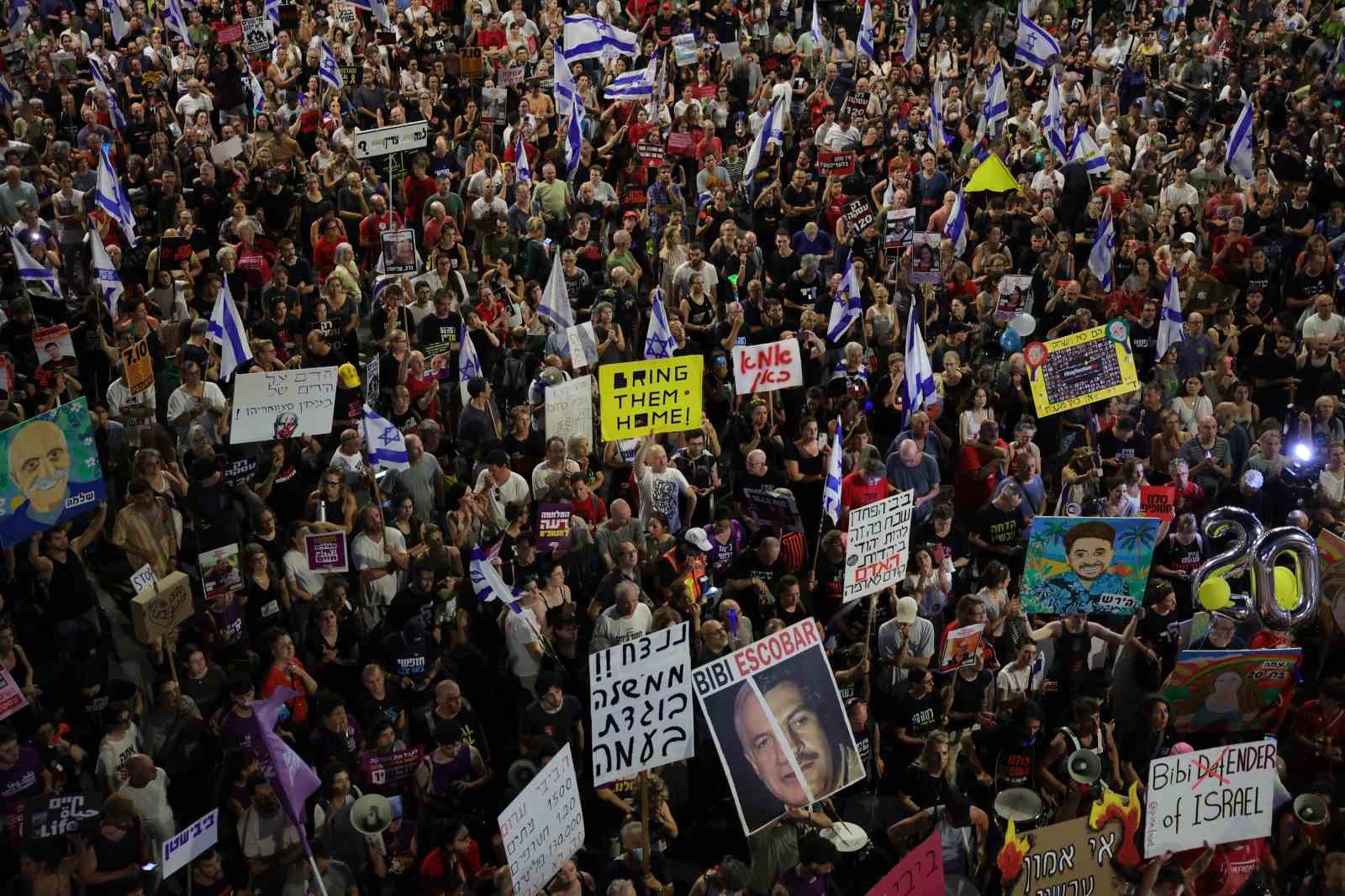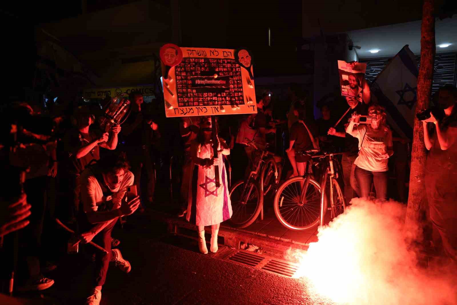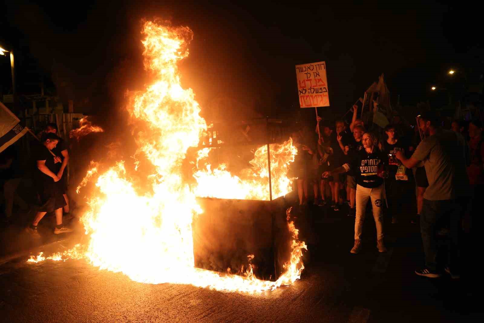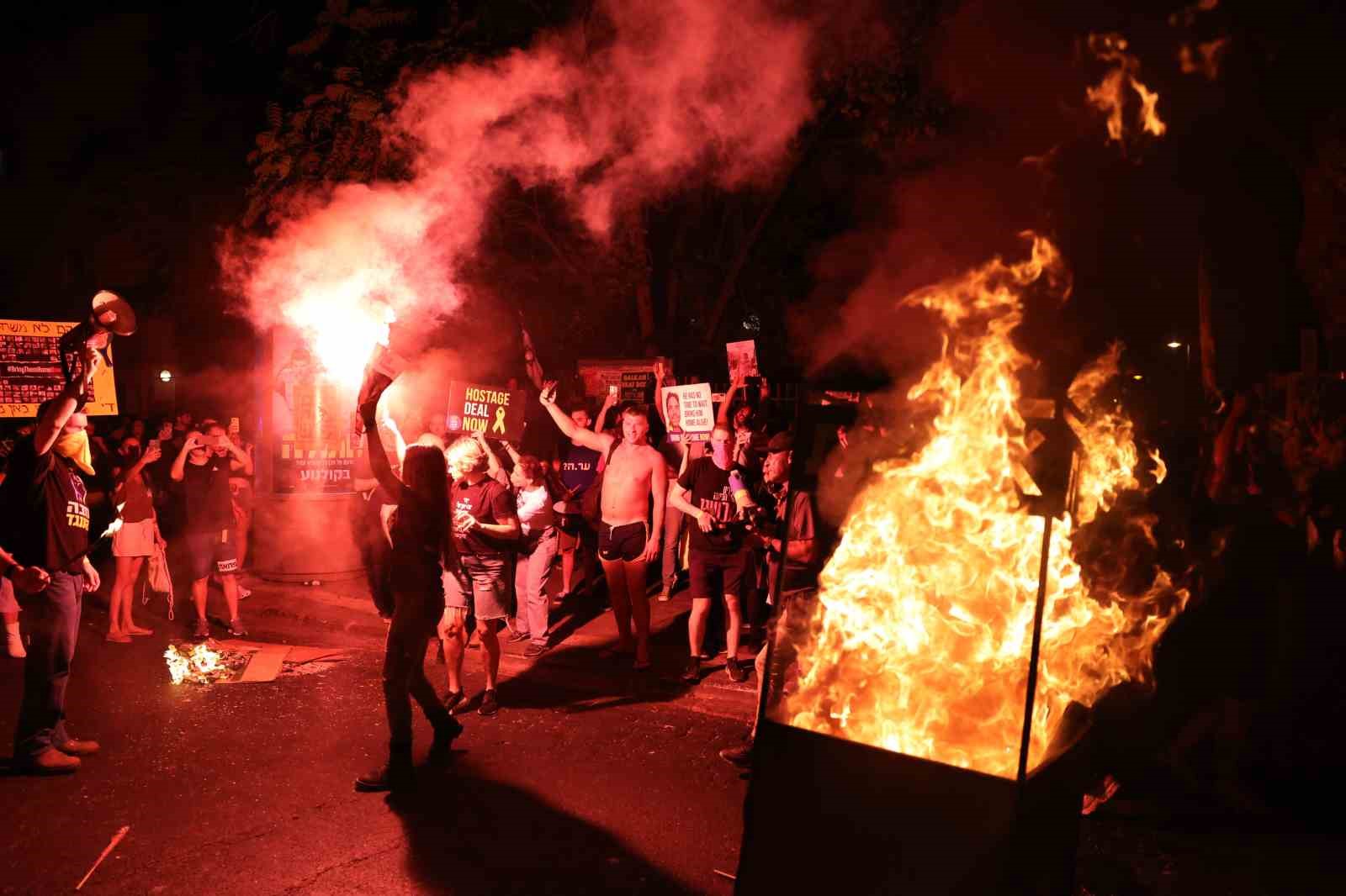 İsrail’de hükümet karşıtı gösteriler şiddetleniyor. Başbakan Binyamin Netanyahu ve hükümetini istemeyen binlerce İsrailli, başkent Tel Aviv’de Kirya Askeri Üssü ve Netanyahu’nun lideri olduğu Likud Partisi genel merkezinin önünde toplandı. Netanyahu’ya tepki gösteren İsrailliler esir anlaşmasının imzalanmasını talep ederken, erken seçim çağrısı yaptı. İsrail başbakanının Gazze Şeridi’nde sürdürdüğü politikayı protesto eden göstericiler caddeleri ateşe verdi. Seçim çağrısı yapan İsraillilere müdahale eden polis hükümet karşıtı slogan atan çok sayıda kişiyi gözaltına aldı.
