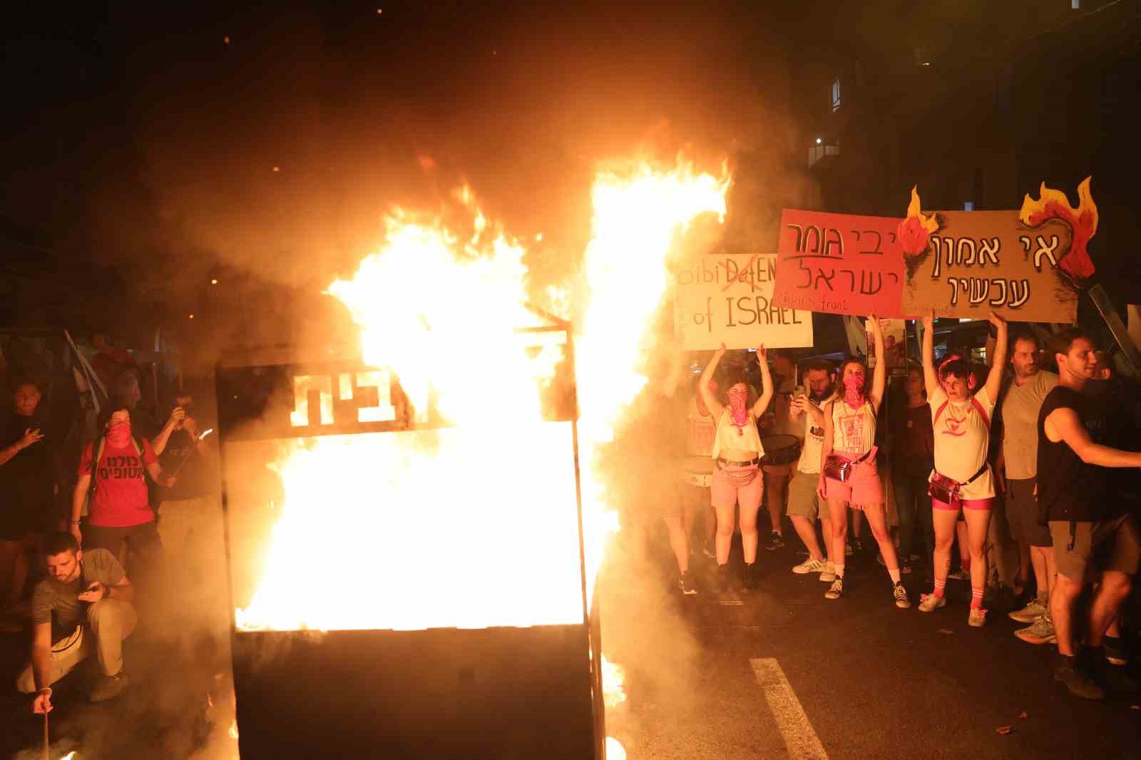 İsrail’in başkenti Tel Aviv’de binlerce hükümet karşıtı gösterici erken seçim çağrısı yaptı, caddeleri ateşe verdi.
