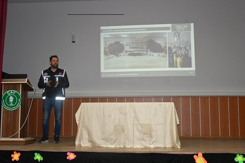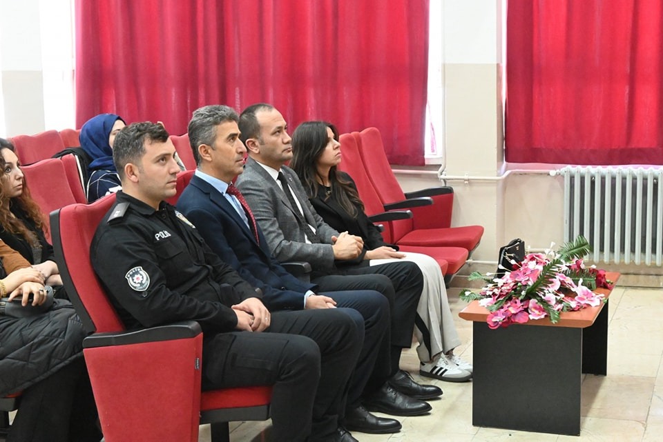 Narkotik polislerince, Nene Hatun Mesleki ve Teknik Anadolu Lisesi Konferans Salonu’nda ailelere, uyuşturucu ve uyarıcı maddeler hakkında bilgilendirme yapıldı.