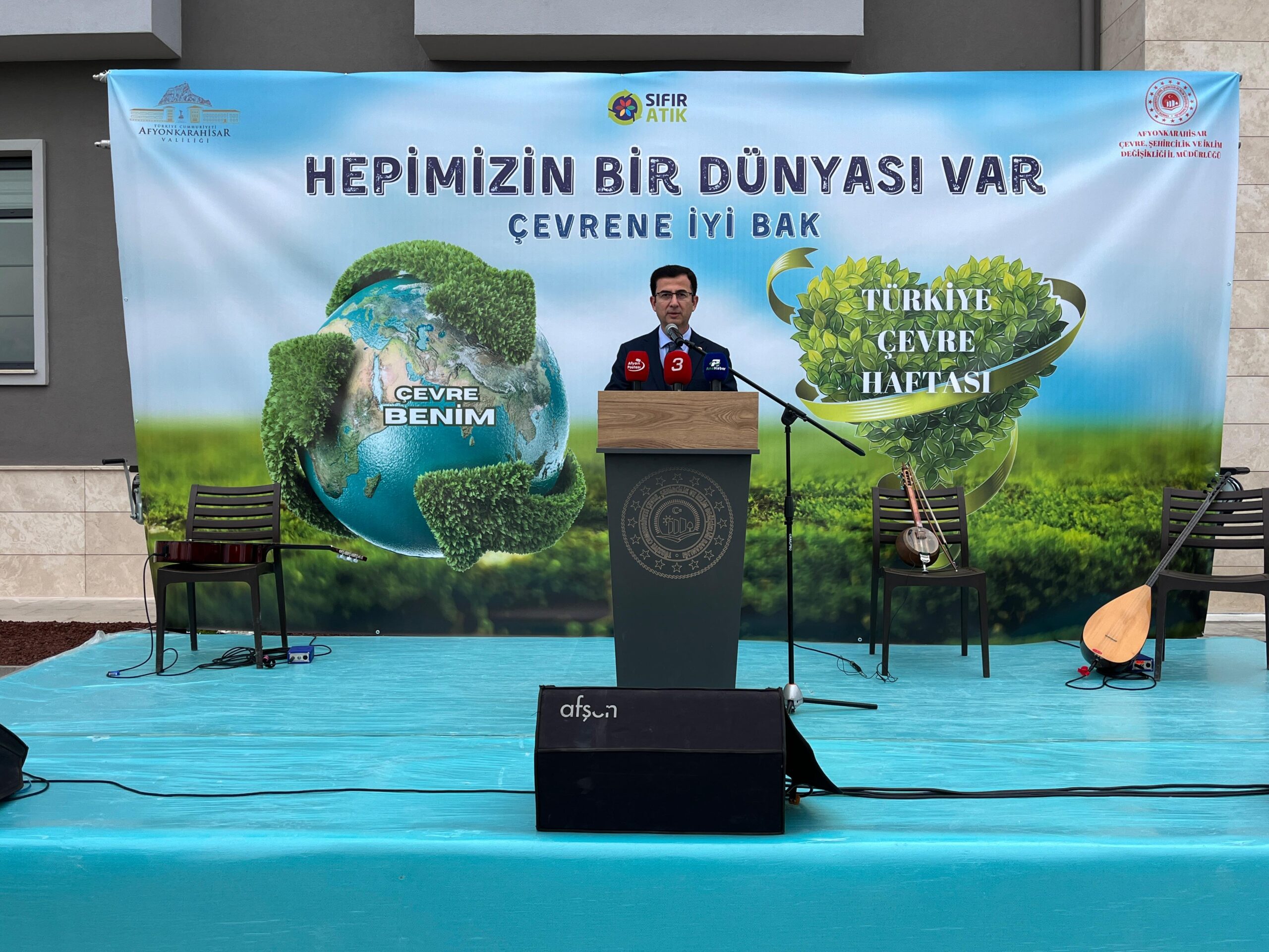 Afyonkarahisar Çevre Hizmetleri Birliği ve Sandıklı Belediye Başkanı Adnan Öztaş da konuşmasında Afyonkarahisar’da hayata geçirilen geri dönüşüm sisteminin Türkiye’de örnek bir tesis olduğunu belirtti. “Çevremiz yaşam kaynağımızdır. Ancak ne yazık ki hızlı artan plastik atıklar doğamızı tehdit ediyor” diyen Başkan Öztaş, “Plastiklerden doğada yok olması yüzyıllar sürerken bizler her gün çevremizi milyonlarca plastik atıyoruz. Bu durum denizlerimizi, ormanlarımızı, canlılarımızı en önemlisi sağlığımızı olumsuz etkiliyor. İşte tam bu yüzden plastiksiz dünya fikri çok önemlidir. Plastik kullanımını azaltmak, tekrar kullanılabilir ürünleri tercih etmek, plastik atıkları doğru şekilde ayrıştırmak, doğaya bırakmamak hepimizin sorumluluğudur. Çevre Hizmetleri Birliği olarak Afyonkarahisar’ın 14 bin km kare alanında tüm çöplerimizi topluyoruz. Çöpleri ve ayrıştırma istasyonumuza getiriyoruz. Ayrıştırma istasyonumuzda plastik atıklar, kağıt ürünleri geri dönüşümünde de ayrıştırarak çevreye çok önemli bir katkı sağlayan bir birliğimiz var. Bu birlik Afyonkarahisar’da kurulmuş ve Türkiye’de örnek bir birlik bizler de bu birliğin baştan olmaktan büyük onur ve gurur duyuyoruz. ‘Çevrene iyi bak’ demek çevreyi sadece korumakla kalmayıp, doğaya saygı göstermek, geleceğimizi güven altına almak demektir. Türkiye Çevre Haftası ve vesilesiyle herkesi günlük hayatlarında çevreye karşı duyarlı olmayı, plastik kullanımını azaltmayı ve temiz bir çevre için ellerinden geleni yapmaya davet ediyorum. Gelin birlikte daha yeşil, daha temiz, plastik atıksız bir Türkiye için el ele verelim” ifadelerini kullandı.