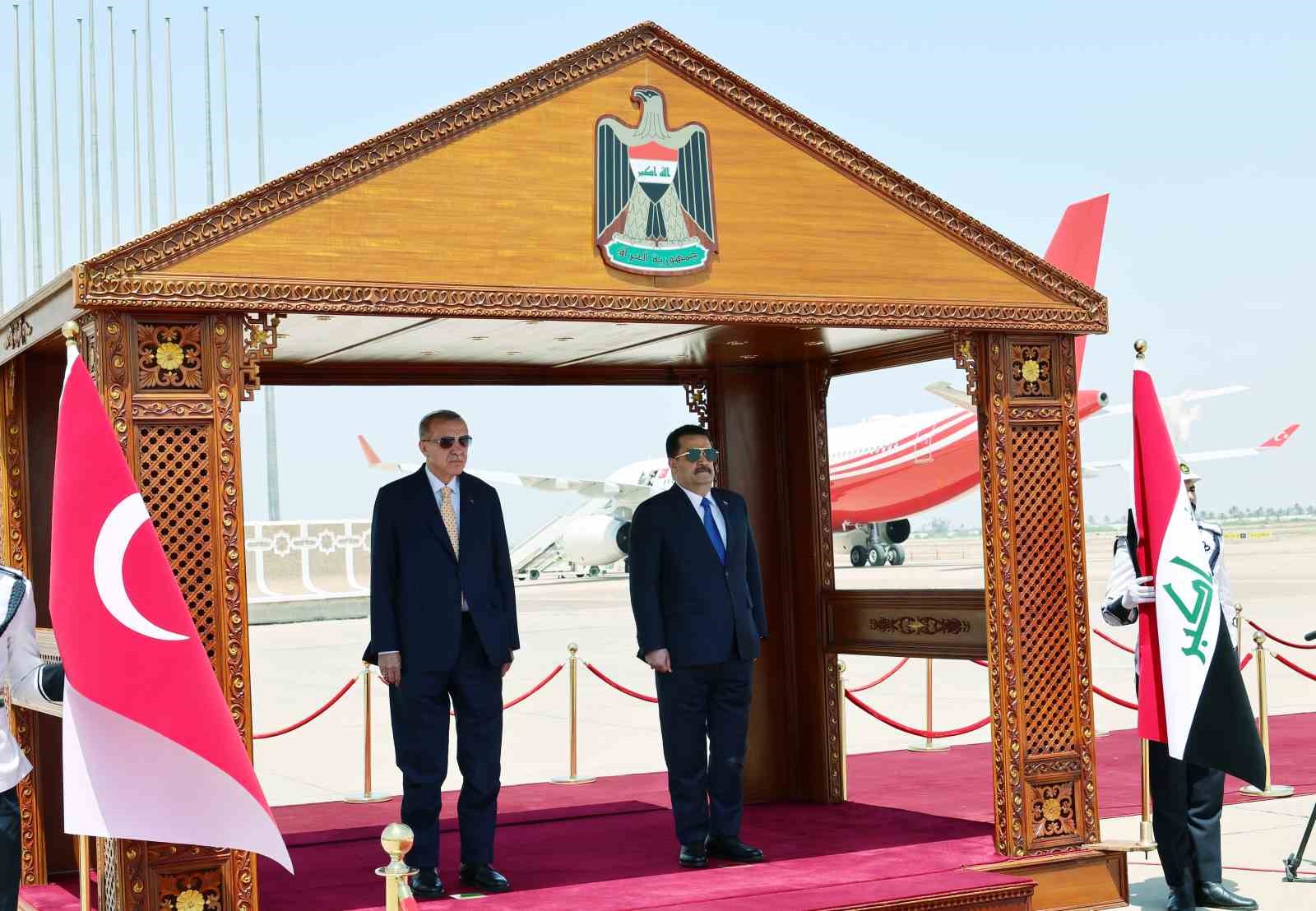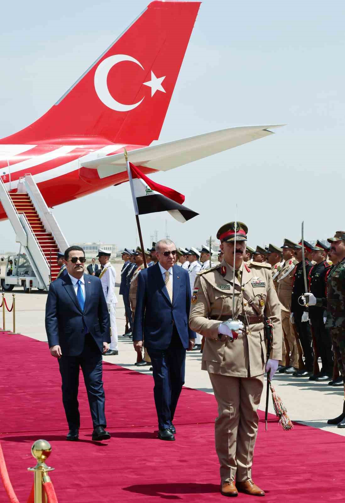 Cumhurbaşkanı Recep Tayyip Erdoğan, Irak’a tarihi bir ziyaret gerçekleştiriyor. Erdoğan, 13 yıl aradan sonra resmi temaslarda bulunmak üzere Irak’ın başkenti Bağdat’a geldi. Erdoğan Bağdat Uluslararası Havalimanı’nda Irak Başbakan Muhammed Şiya Sudani tarafından resmi törenle karşılandı. Erdoğan, iki ülkenin milli marşlarının okunmasının ardından askeri kıtayı selamladı.