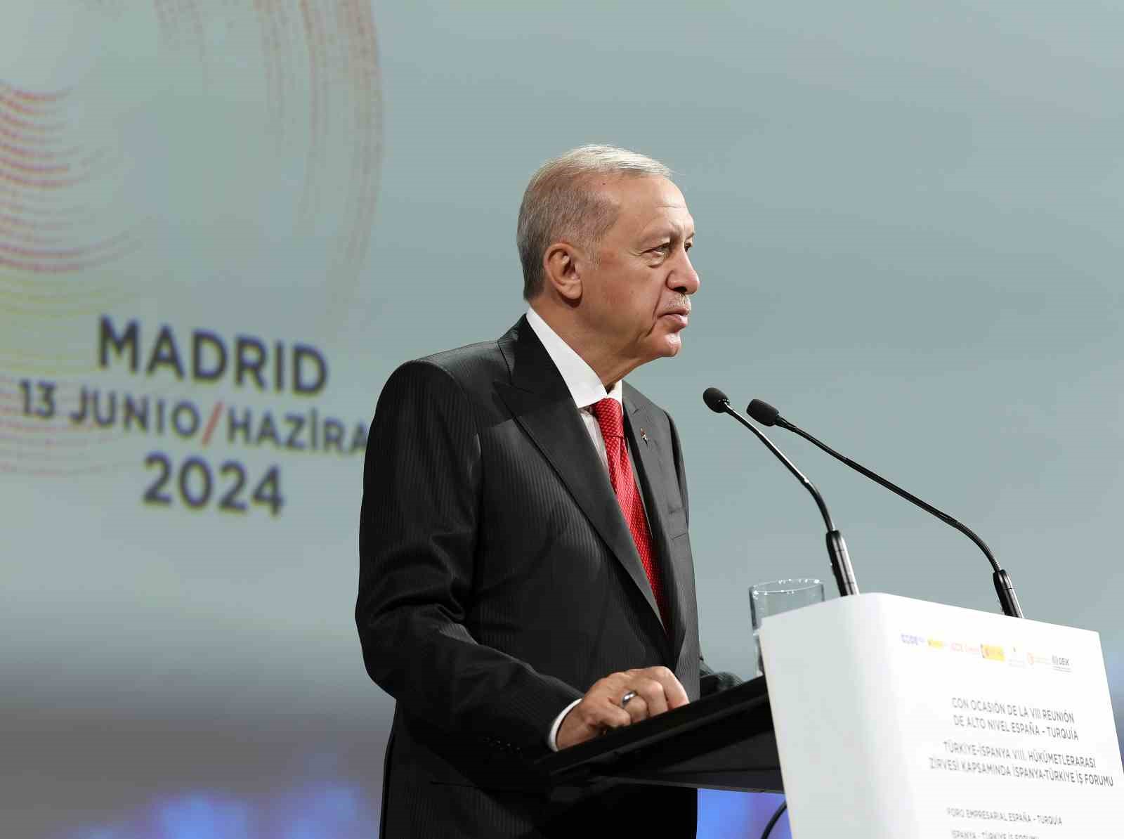 Cumhurbaşkanı Recep Tayyip Erdoğan, Türkiye-İspanya 8. Hükümetlerarası Zirvesi nedeniyle bulunduğu İspanya’nın başkenti Madrid’de temaslarını sürdürüyor. Cumhurbaşkanı Erdoğan, İspanya Başbakanı Pedro Sanchez ile birlikte Türkiye-İspanya İş Forumu’na katıldı. Cumhurbaşkanı Erdoğan yaptığı konuşmada, Türkiye ve İspanya arasındaki köklü ve güçlü ilişkilerin, iş dünyasının attığı cesur ve vizyoner adımlardan beslendiğini vurguladı. Erdoğan, “İlişkilerimizin 2021 yılından itibaren kapsamlı ortaklık olarak tanımlanmasında siz değerli iş insanlarımızın katkısı büyüktür. Son yıllarda gerek Covid-19 salgını, gerekse yakın coğrafyamızda meydana gelen çatışmalar küresel ticaretin karşı karşıya kaldığı zorlukları artırdı. Mevcut meydan okumalar karşısında dayanışma ve iş birliğimiz hayati önemdedir” dedi.