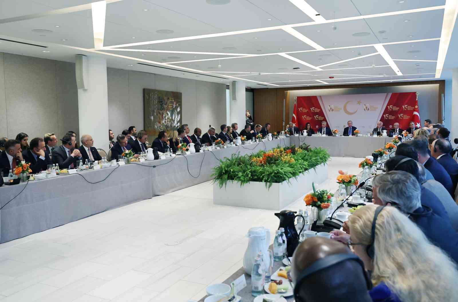 Bir gelenek haline gelen bu buluşmanın iki ülke iş çevrelerine yeni işbirlikleri ve ortaklıklar için önemli bir imkan sunduğuna inandığını kaydeden Cumhurbaşkanı Erdoğan, ekonomik ve ticari konuların Amerika’yla münasebetlerin en önemli boyutlarından birini teşkil ettiğini ifade etti.