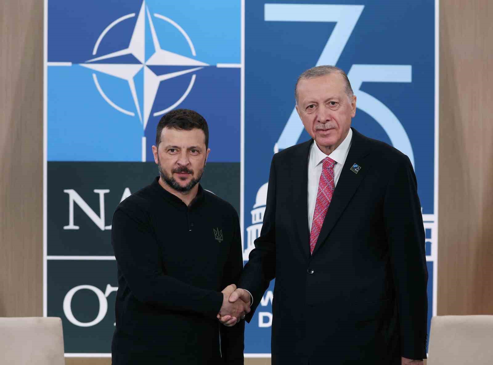 Cumhurbaşkanı Recep Tayyip Erdoğan, NATO Devlet ve Hükümet Başkanları Zirvesi’ne katılmak üzere geldiği ABD’nin başkenti Washington DC’de temaslarına devam ediyor. Cumhurbaşkanı Erdoğan, Ukrayna Devlet Başkanı Vladimir Zelenskiy ile bir araya geldi. Görüşmede, Ukrayna-Rusya Savaşı’nın seyri, bölgesel ve küresel konular ele alındı.