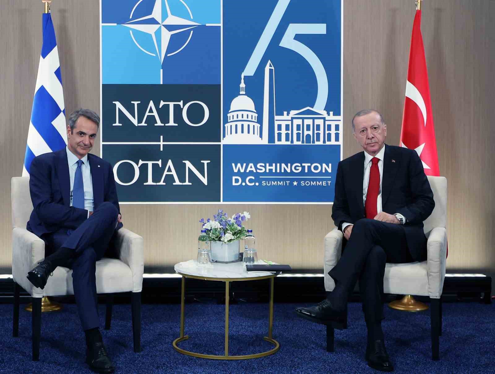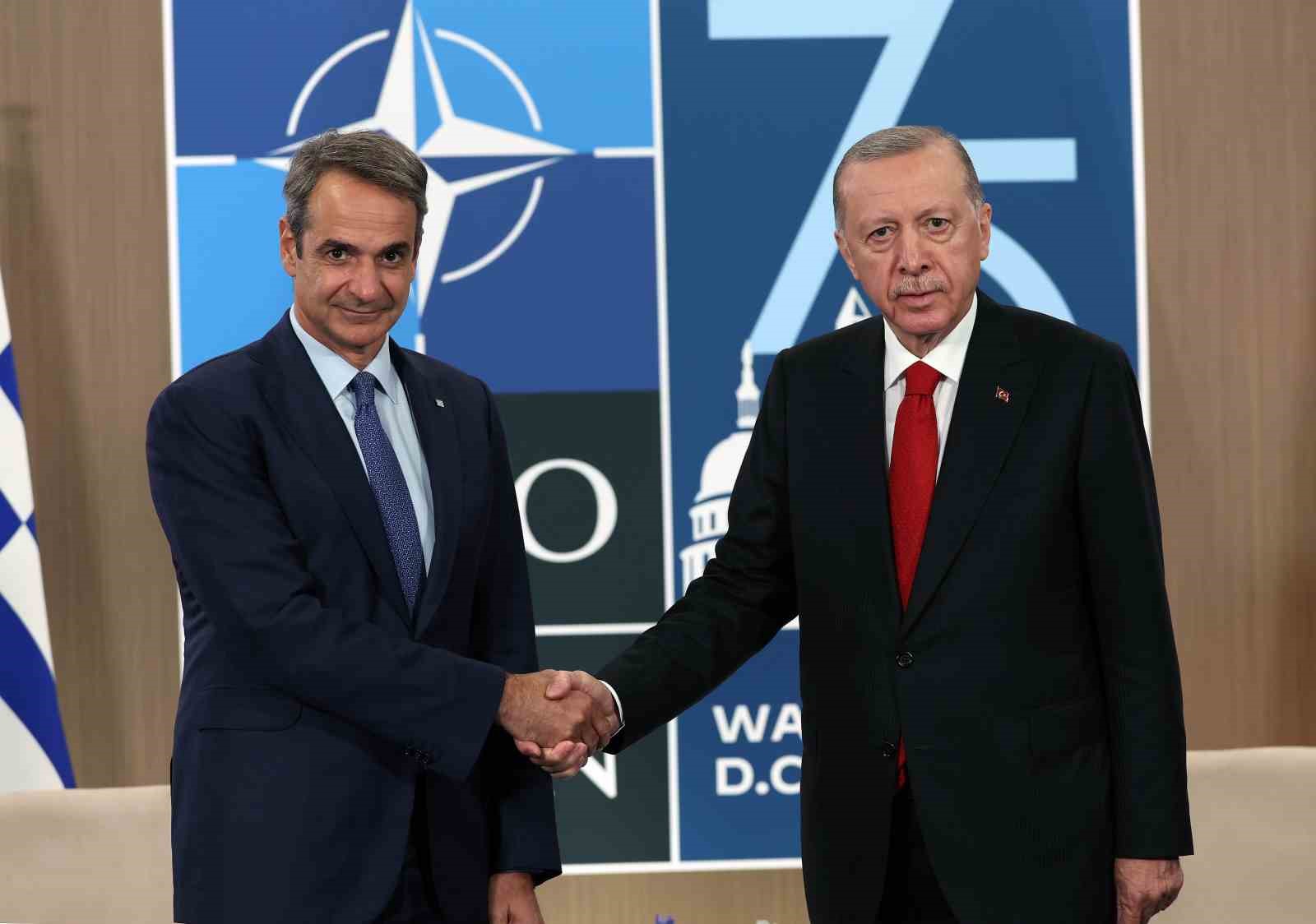 Cumhurbaşkanı Recep Tayyip Erdoğan, NATO Devlet ve Hükümet Başkanları Zirvesi’ne katılmak üzere geldiği ABD’nin başkenti Washington DC’de temaslarını sürdürüyor. Cumhurbaşkanı Erdoğan, zirve kapsamında Yunanistan Başbakanı Kyriakos Miçotakis ile zirvenin yapıldığı Walter E. Convention Center’da bir araya geldi.