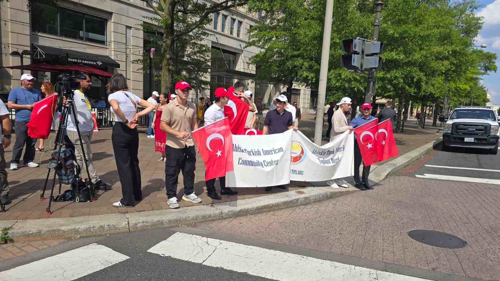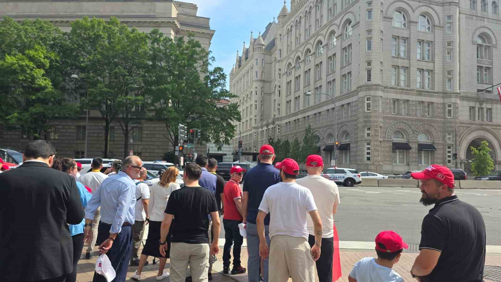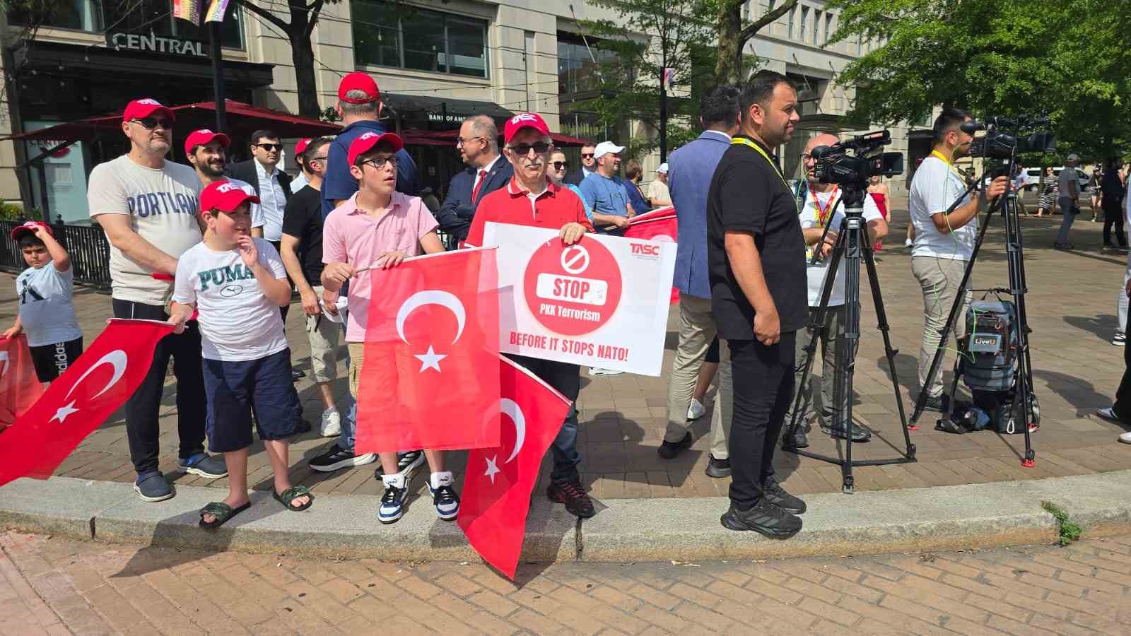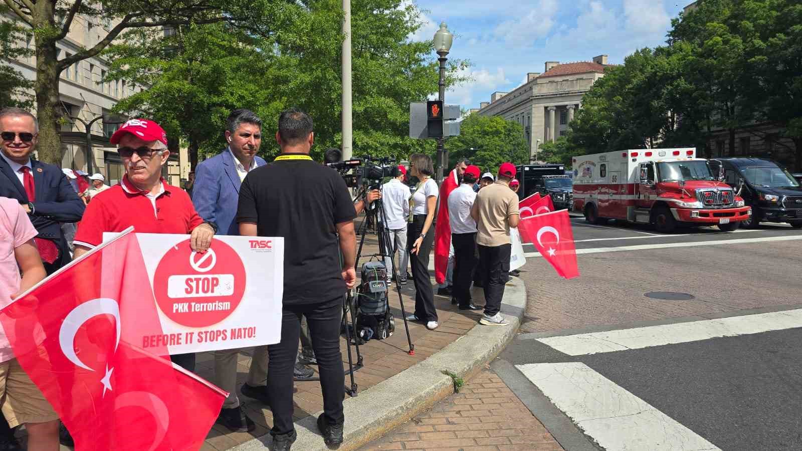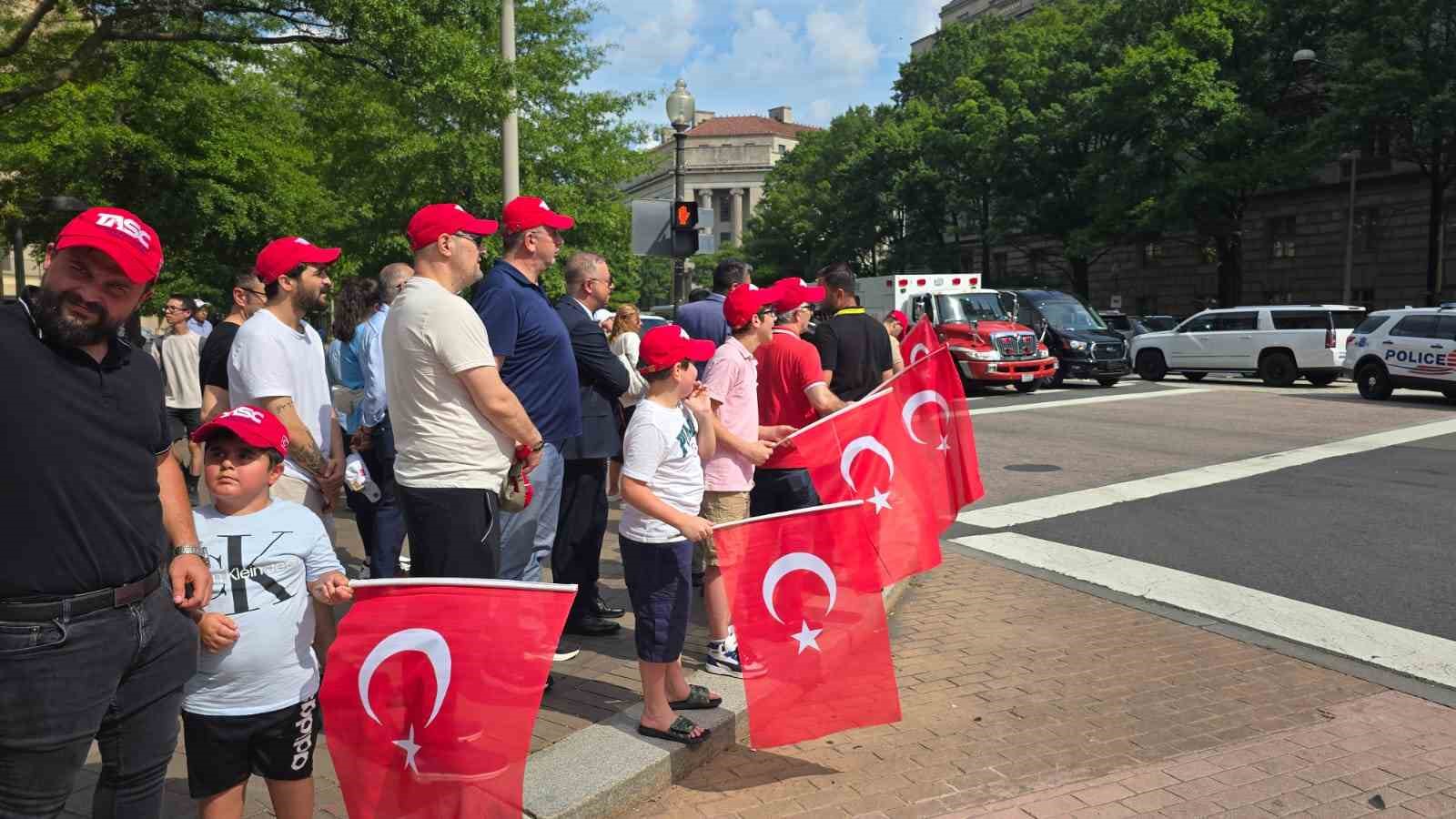 NATO Devlet ve Hükümet Başkanları Zirvesi’ne katılmak üzere ABD’nin başkenti Washington DC’ye gelen Cumhurbaşkanı Recep Tayyip Erdoğan, Andrews Askeri Hava Üssü’nden konaklayacağı otele geçti. Otelin önünde Cumhurbaşkanı Erdoğan’ı, Türkçe ve İngilizce “Hoş geldiniz” yazılı pankartlar ve Türk bayraklarıyla karşılayan vatandaşlar, “Türkiye sizinle gurur duyuyor” sloganları attı. Cumhurbaşkanı Erdoğan ile eşi Emine Erdoğan, makam aracından el sallayarak kendilerine sevgi gösterisinde bulunan vatandaşları selamladı.