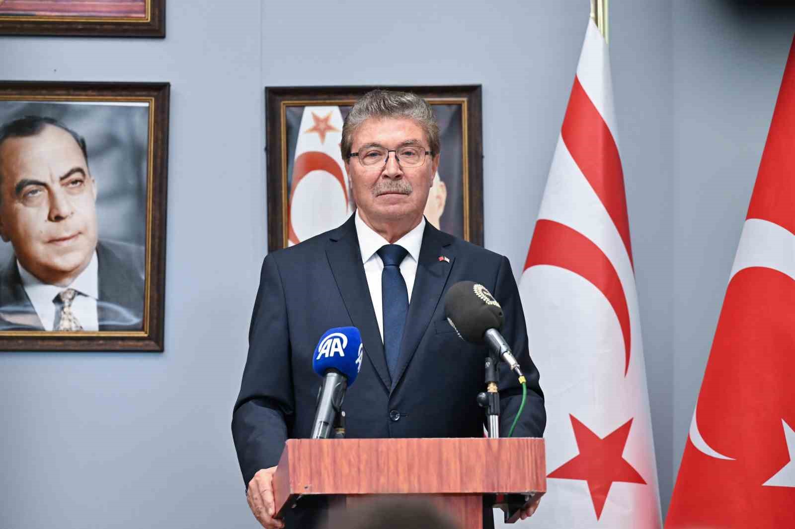 “Son dönemde bölgemizde yaşanan gelişmeler Doğu Akdeniz’de istikrarın önemini bir kez daha gözler önüne sermiştir” diyen Yılmaz, “Her zaman ifade ettiğimiz üzere, Kıbrıs Türklerinin özden gelen hakları olan egemen eşitlik ve eşit uluslararası statüleri tescil edilmeden yeni bir müzakere sürecine girişilmesi söz konusu değildir. Cumhurbaşkanı Tatar’ın her fırsatta altını çizdiği bu hususlarla ilgili en güçlü şekilde Kıbrıs Türkü’nün yanında olduğumuzu ifade etmek isterim. Bu haklarınızın asgari tezahürü olarak, Kıbrıs Türkü kardeşlerimizin maruz kaldığı insanlık dışı izolasyonun son bulması, KKTC ile doğrudan uçuşlar ve doğrudan ticaretin başlatılması gerekmektedir. Ayrıca, Sayın Tatar’ın yabancı muhataplarla doğrudan temaslarda bulunmasına engel çıkarmaya da son verilmesi elzemdir. Biz Türkiye olarak uluslararası topluma Kıbrıs Türklerinin haklı davasını anlatmaya devam edecek ve KKTC’ye desteğimizi sürdüreceğiz” açıklamasını yaptı.