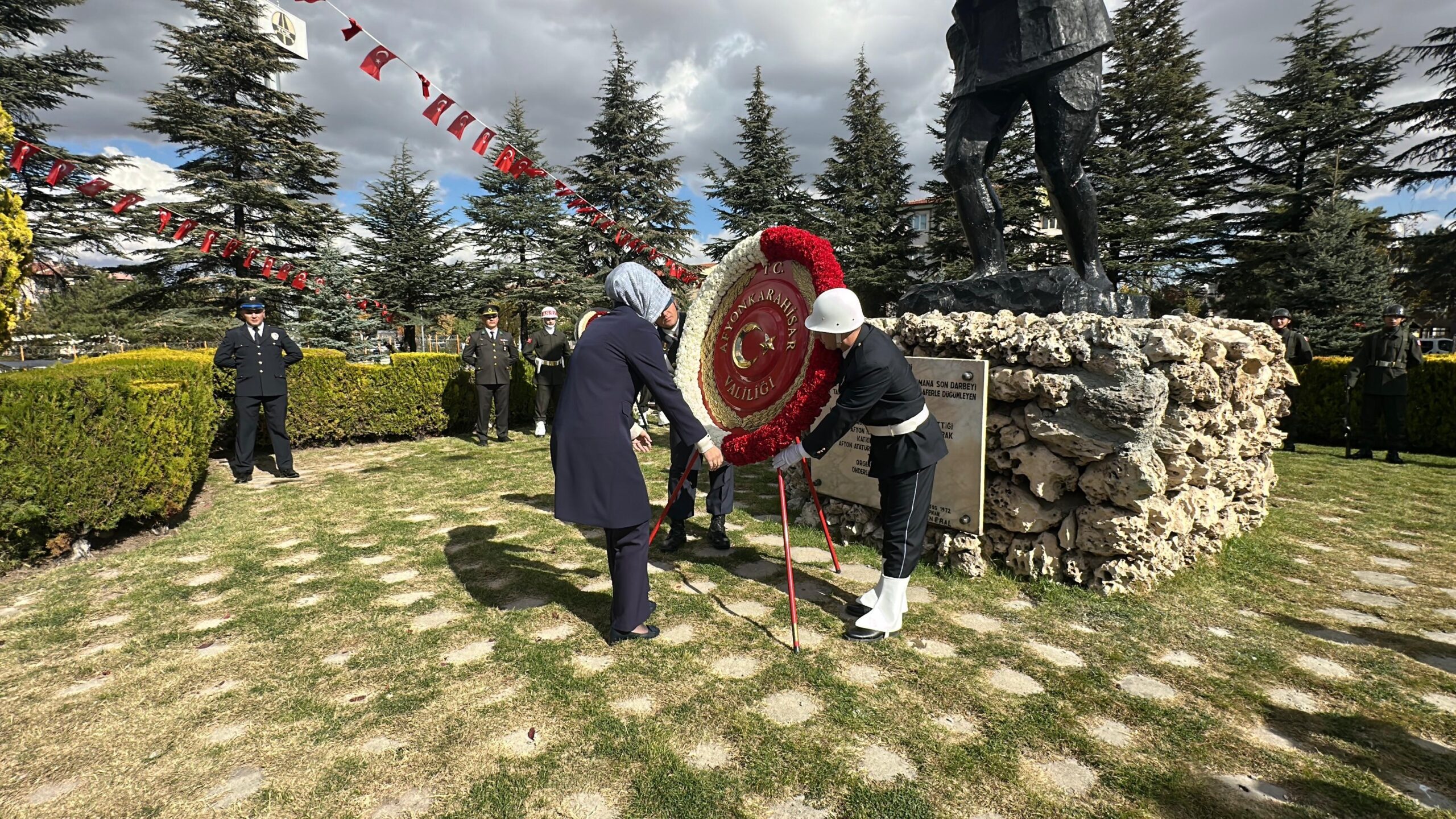 Afyonkarahisar’da 29 Ekim Cumhuriyet Bayramı kutlamaları kapsamında Kocatepe Parkı’nda gerçekleştirilen törende, Cumhuriyet’in kurucusu Gazi Mustafa Kemal Atatürk ve silah arkadaşları bir kez daha minnetle anıldı.