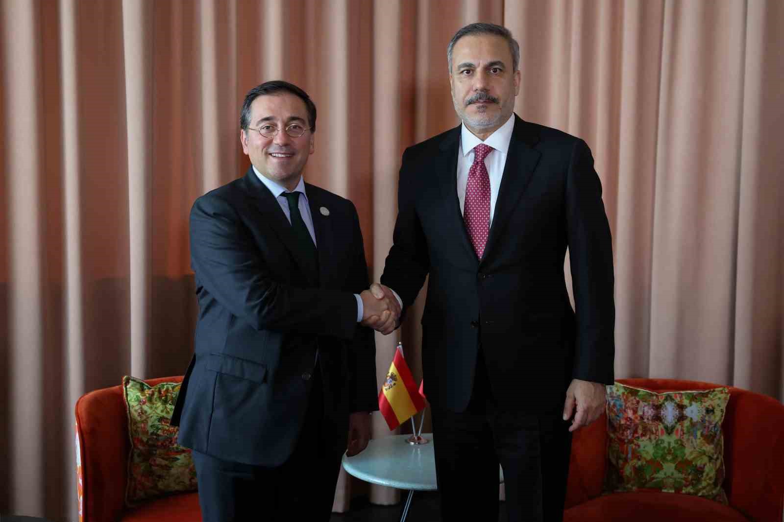 Dışişleri Bakanı Hakan Fidan, Filistin konulu toplantılara katılmak üzere geldiği Belçika’da İspanya Dışişleri, Avrupa Birliği ve İşbirliği Bakanı Jose Manuel Albares ile bir araya geldi.