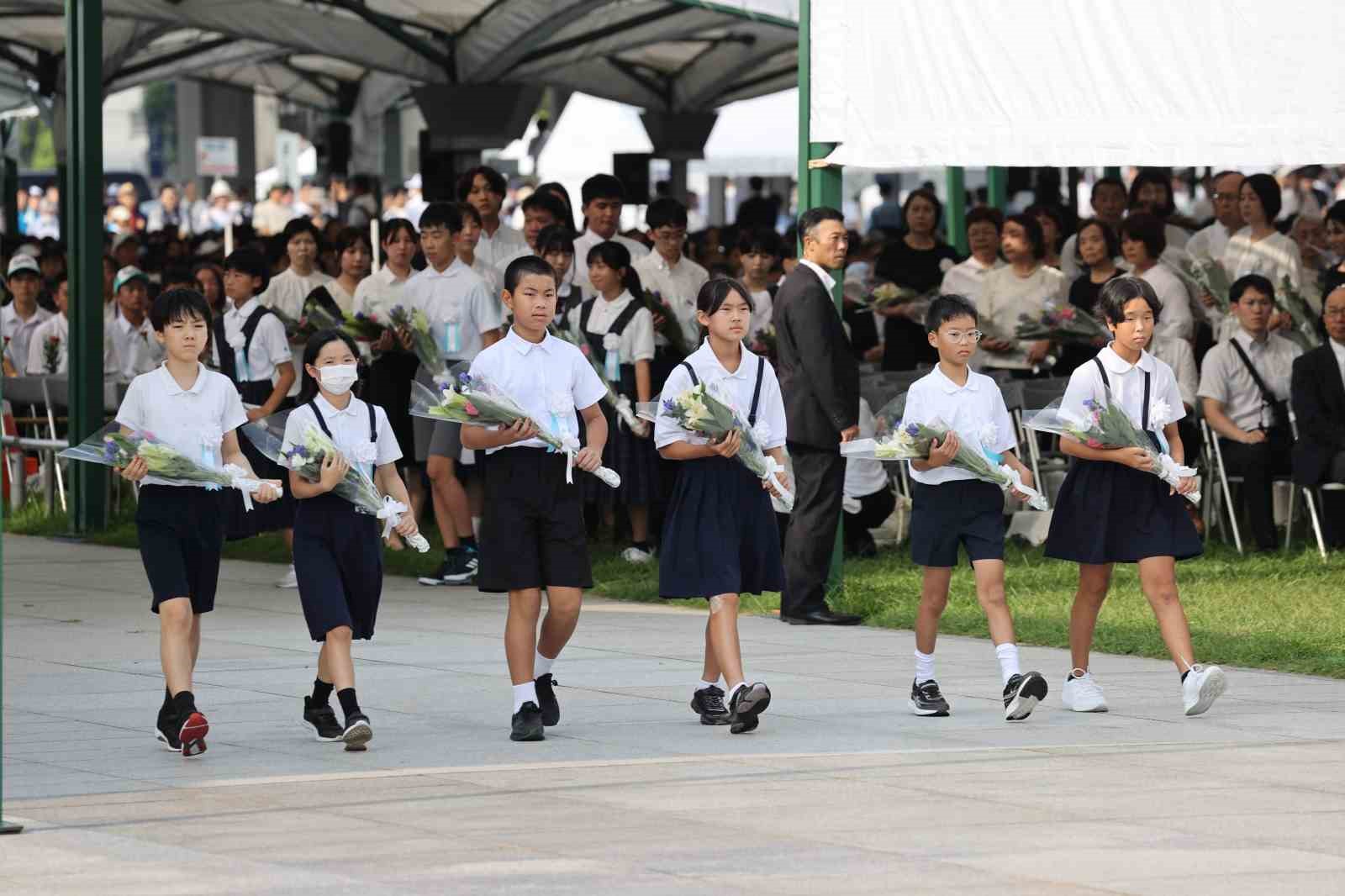 Törende Barış Deklarasyonu’nu okuyan Hiroşima Belediye Başkanı Kazumi Matsui, dünya genelinde artan askeri çatışmalara değinerek Rusya’nın Ukrayna saldırıları ve Filistin’de giderek kötüleşen durum nedeniyle sayısız masum insanın hayatını kaybettiğini hatırlatarak “Bana öyle geliyor ki, bu küresel trajediler uluslar arasında güvensizliği ve korkuyu derinleştirmekte, aslında reddetmemiz gereken ‘uluslararası sorunları çözmek için askeri güce güvenmemiz gerektiği’ yönündeki kamuoyu varsayımını güçlendirmektedir” dedi.