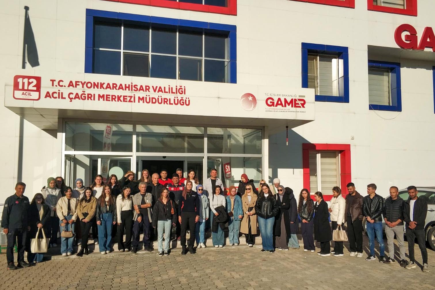 Eğitim Fakültesi Öğretim Üyesi Prof. Dr. Hakkı Yazıcı gözetiminde düzenlenen gezide öğrenciler, Sivil Savunma Uzmanı Yakup Ulucan ve Arama Kurtarma Teknisyeni Esra Çalışır tarafından afet durumunda yaşananlar ve yapılması gerekenler hakkında bilgilendirildi. Ardından “Köpekli Arama Sunumu” ile arama kurtarma araçları ve kullanılan malzemelerin tanıtımı yapıldı. Afyonkarahisar Valiliği Acil Çağrı Merkezi Müdürlüğünde devam eden programda, görevli Fatih Müftüoğlu tarafından anlatımlar yapılarak sorular cevaplandırıldı. Gezi, hatıra fotoğrafının çekilmesinin ardından sona erdi. >>>Ahmet Çetinkaya