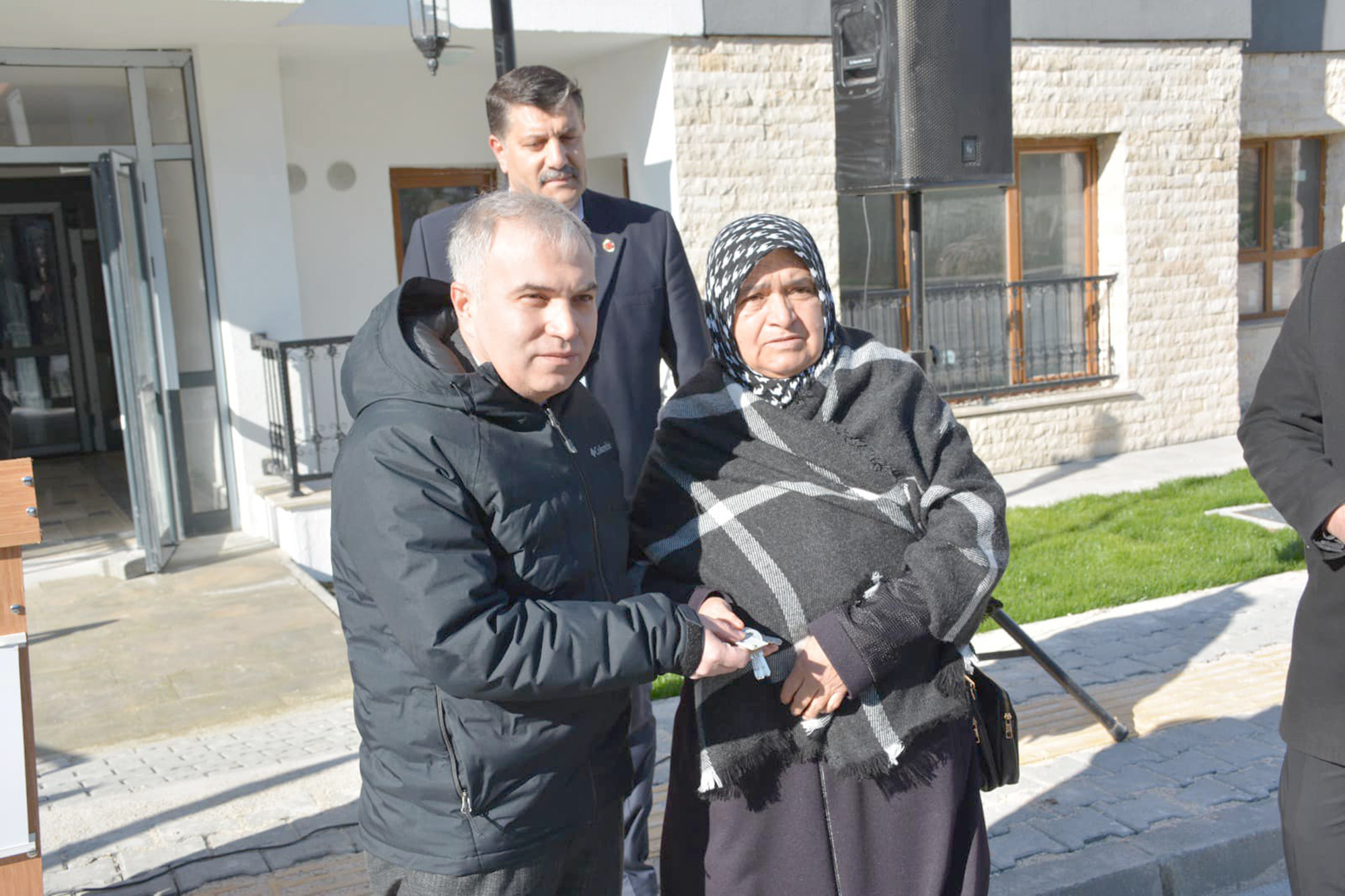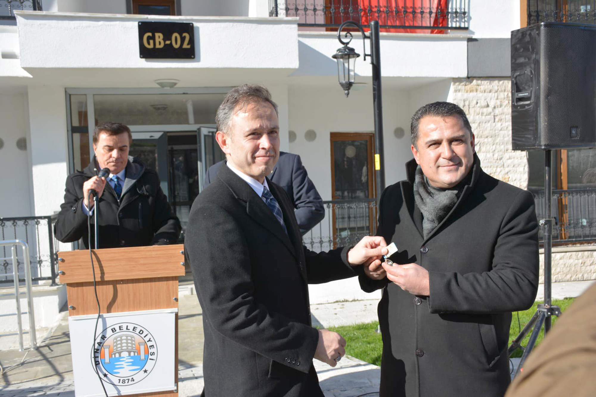 Dinar ilçesinde 4. Etap TOKİ konutlarında gerçekleşen program Saygı Duruşu ve İstiklal Marşı’nın okunması akabinde Dinar Belediye Başkanı Nihat Sarı’nın ve İlçe Kaymakamı Kemal Duru birer konuşma yaptılar. Dinar Belediye Başkanı Nihat Sarı, İlçe Kaymakamı Kemal Duru ve İlçe Emniyet Müdürü Erdal Yanık, hak sahiplerine konutların anahtarlarını teslim ettiler./Ayşe Karadeniz
