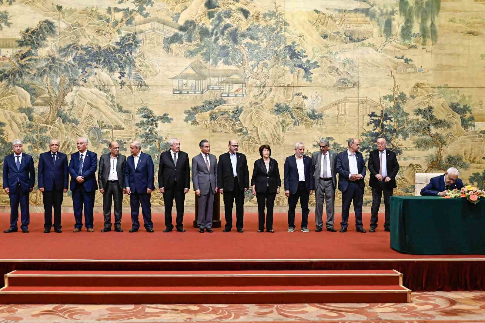 Çin’in başkenti Pekin’de Hamas Hareketi ve El Fetih’in de aralarında bulunduğu 14 Filistinli grup, bölünmeyi sona erdirmek amacıyla Pazar gününden bu yana gerçekleştirilen görüşmelerin ardından “Bölünmenin sona erdirilmesini ve Filistin birliğinin güçlendirilmesini” içeren Pekin Deklarasyonu’na imza attı. Buna göre Filistinli gruplar, Filistin Kurtuluş Örgütü (FKÖ) çatısı altında “Geçici bir ulusal birlik hükümeti kurma” yolunda anlaşmaya vardı.