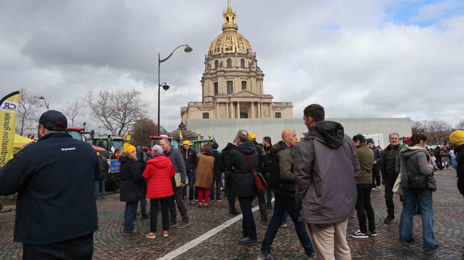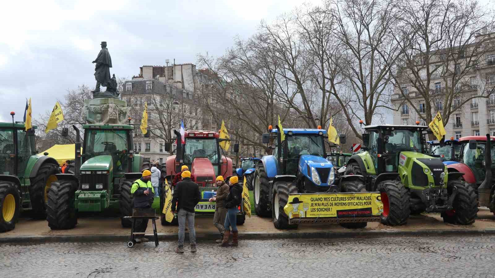 Fransa’da çiftçiler, yarın yapılacak tarım fuarı öncesinde düzenledikleri eylemde traktörleriyle Tarım Bakanlığı binasına giden yolu trafiğe kapattı.