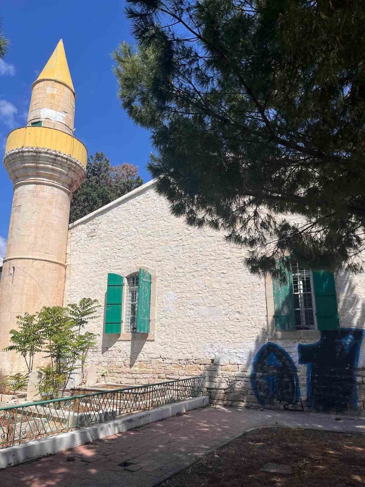 Güney Kıbrıs Rum Yönetimi’nde (GKRY) bulunan Arnavut Camisi’nin duvarlarına sprey boya ile Limasol’daki bir futbol kulübünün sloganı ve logoları çizildi.