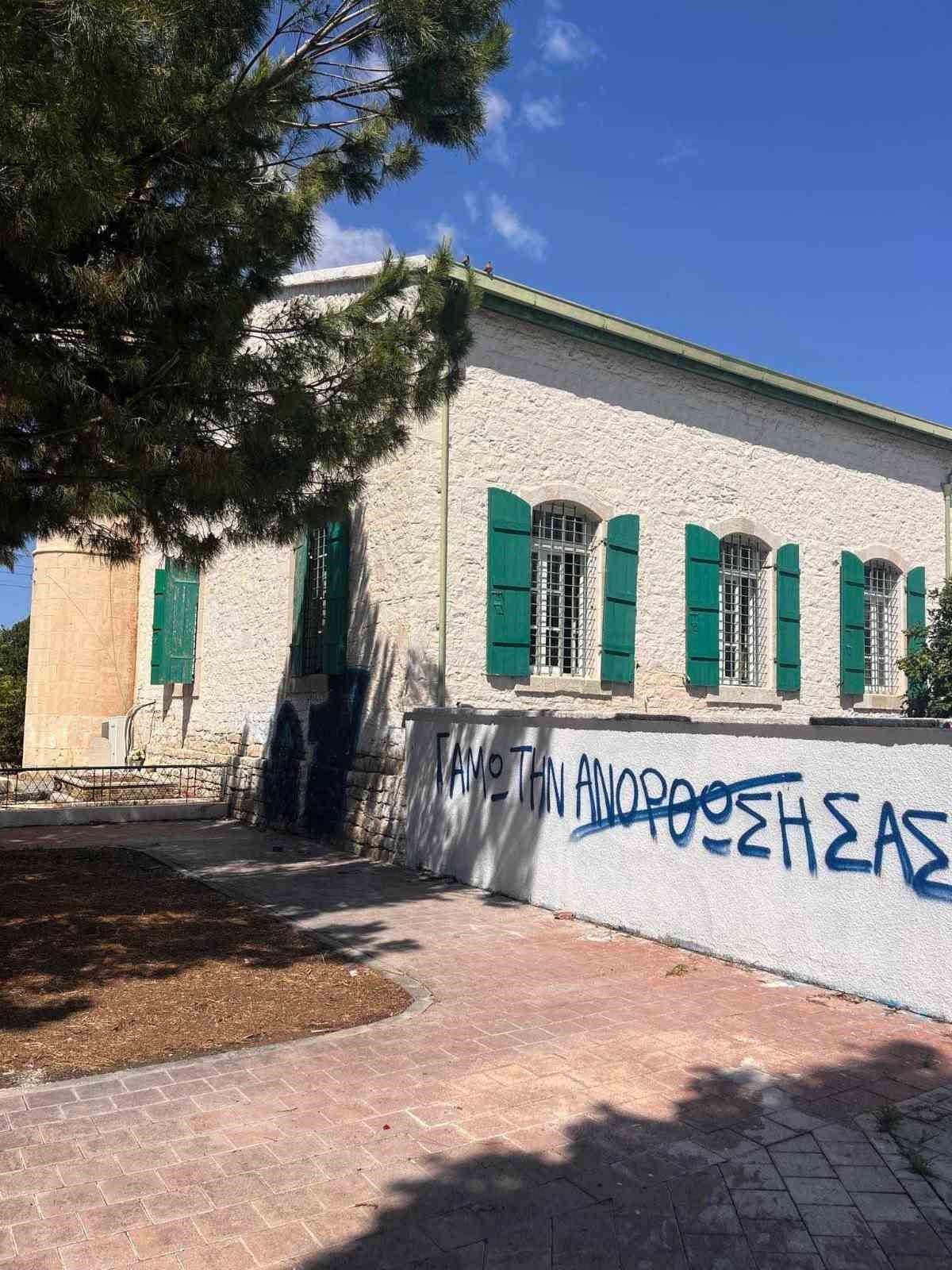 Güney Kıbrıs Rum Yönetimi’nin (GKRY) Limasol bölgesinde bulunan Arnavut Camisi’ne sprey boyayla saldırı düzenlendi. Caminin duvarlarına sprey boya ile Limasol’daki bir futbol kulübünün sloganı ve logoları çizildi.